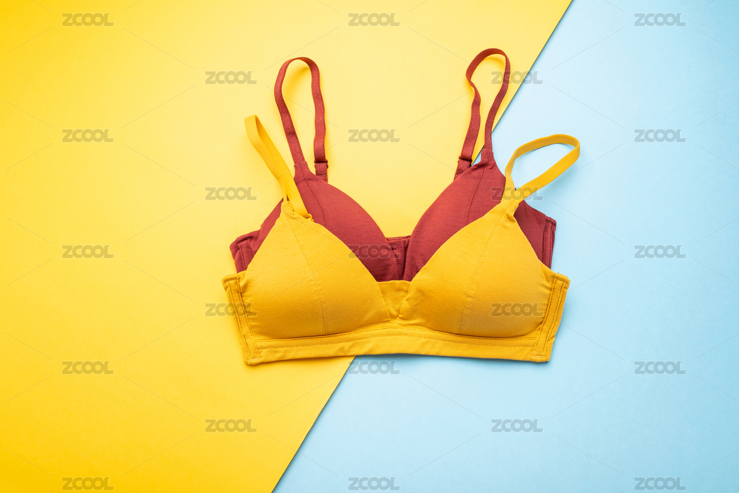 撞色背景上的纯棉内衣,女性时尚购物概念