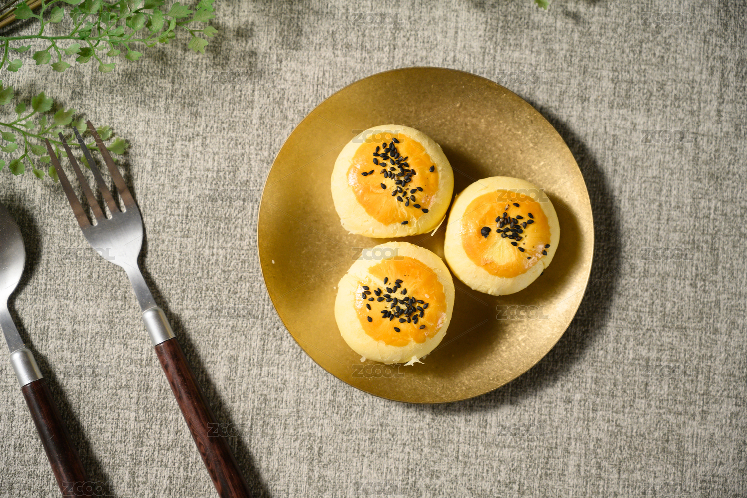 桌面上的盘子里的美味可口的蛋黄酥
