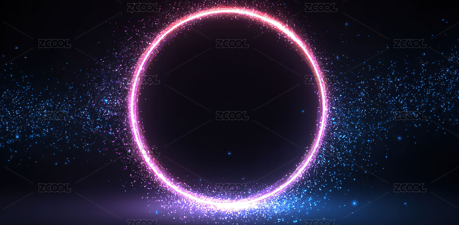 黑色背景上闪耀的蓝色圆环与闪亮光芒