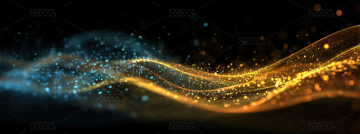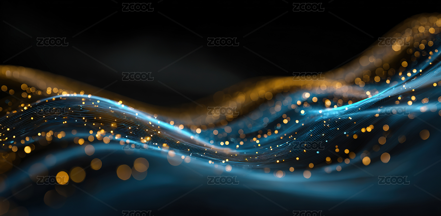 金色波浪与光点交织的抽象背景