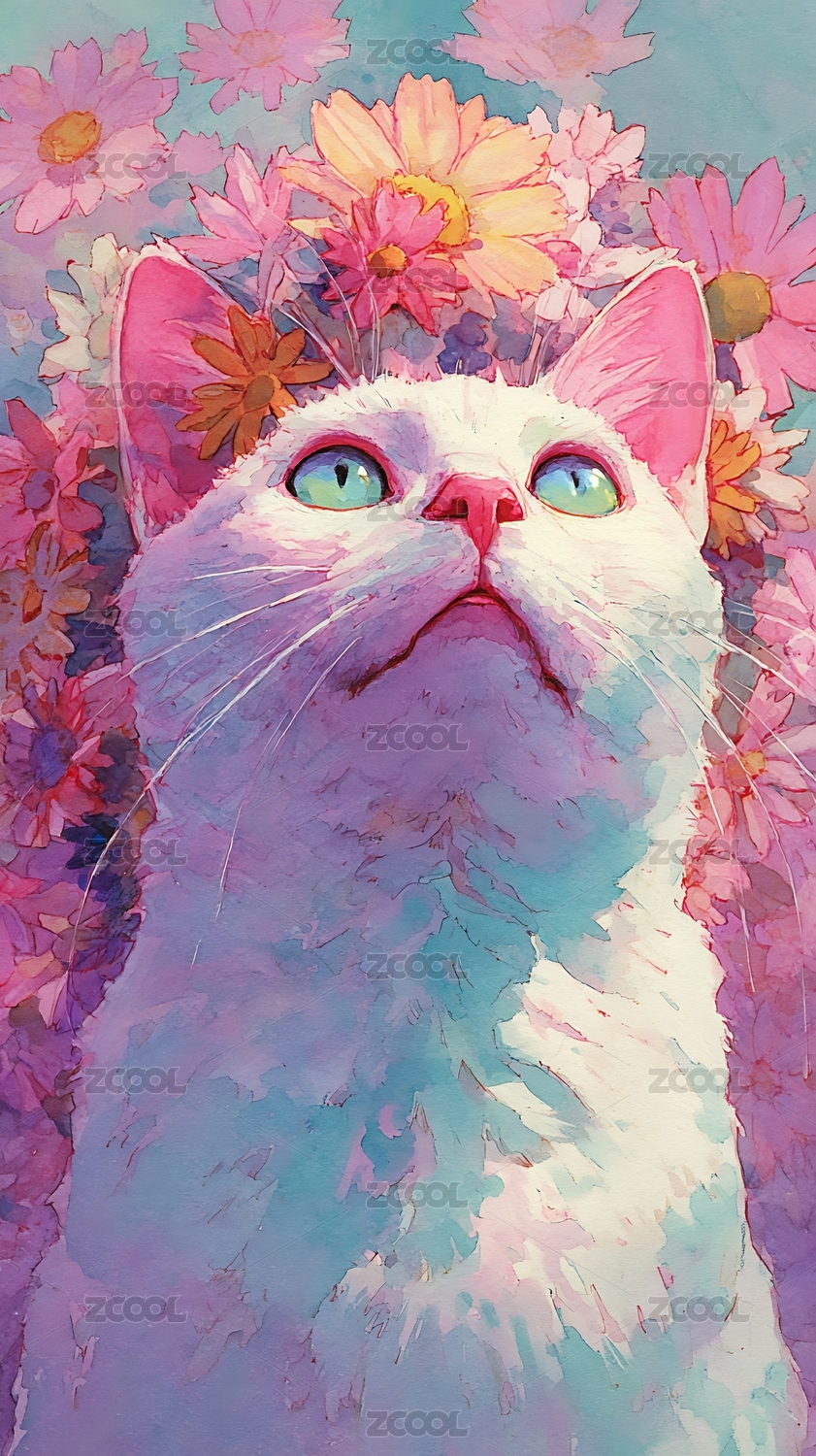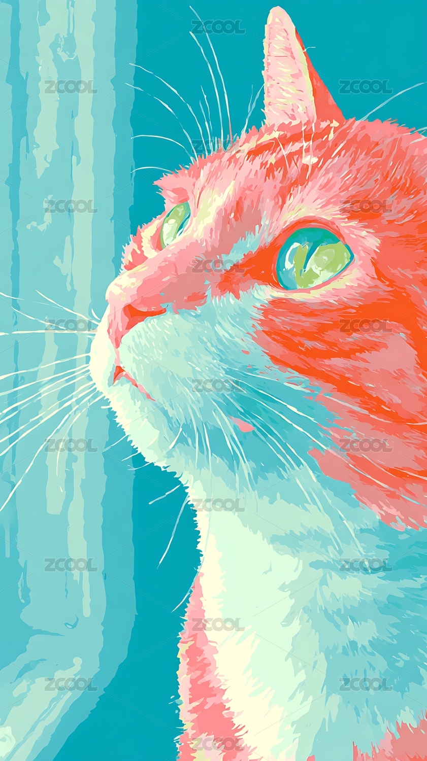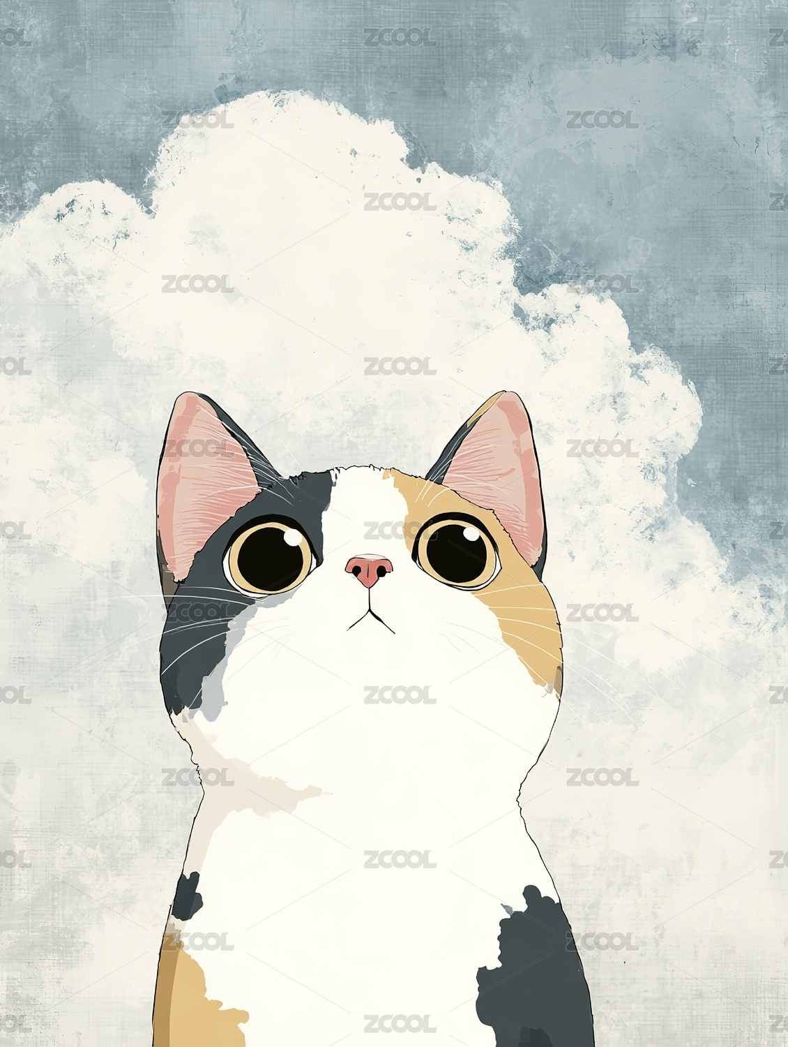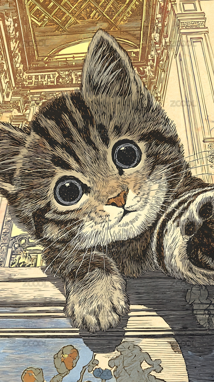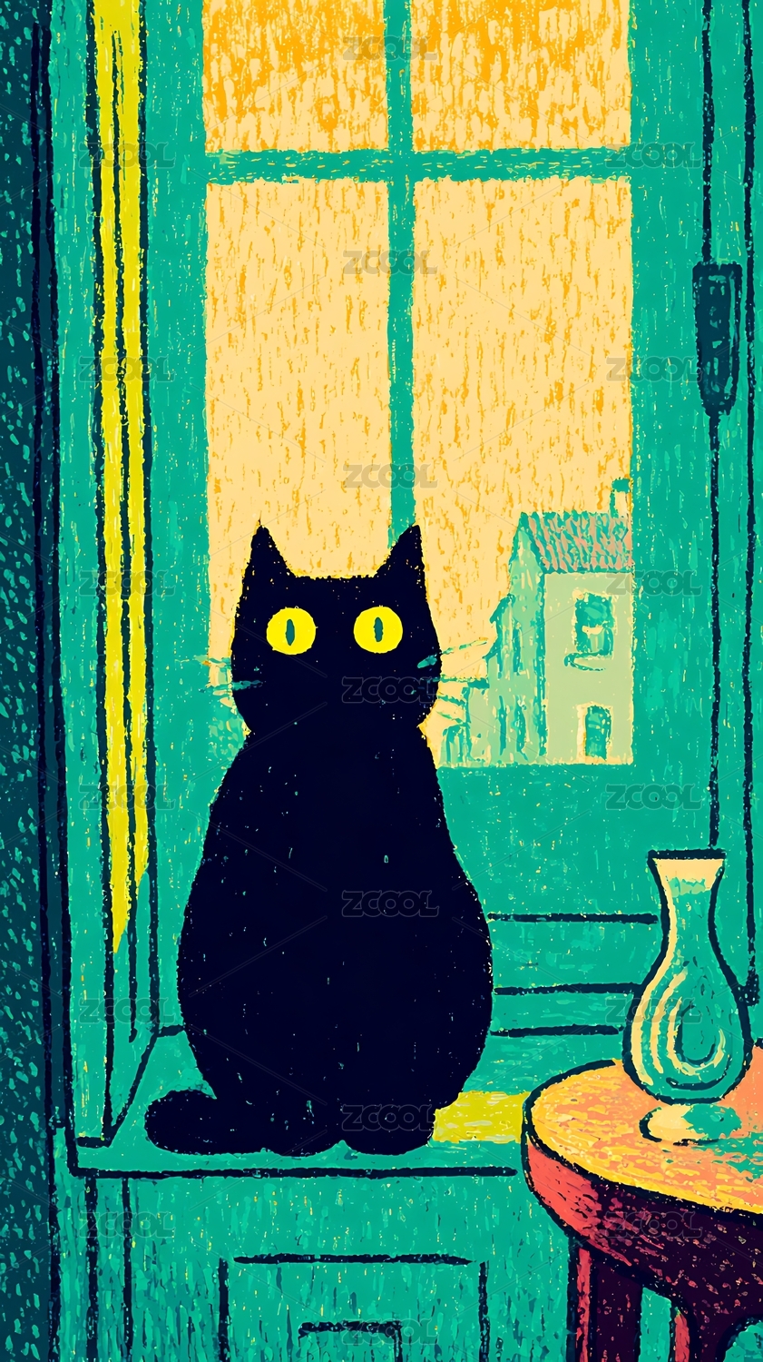 猫咪,插画,可爱,动物,萌宠,黑白,艺术,卡通,猫