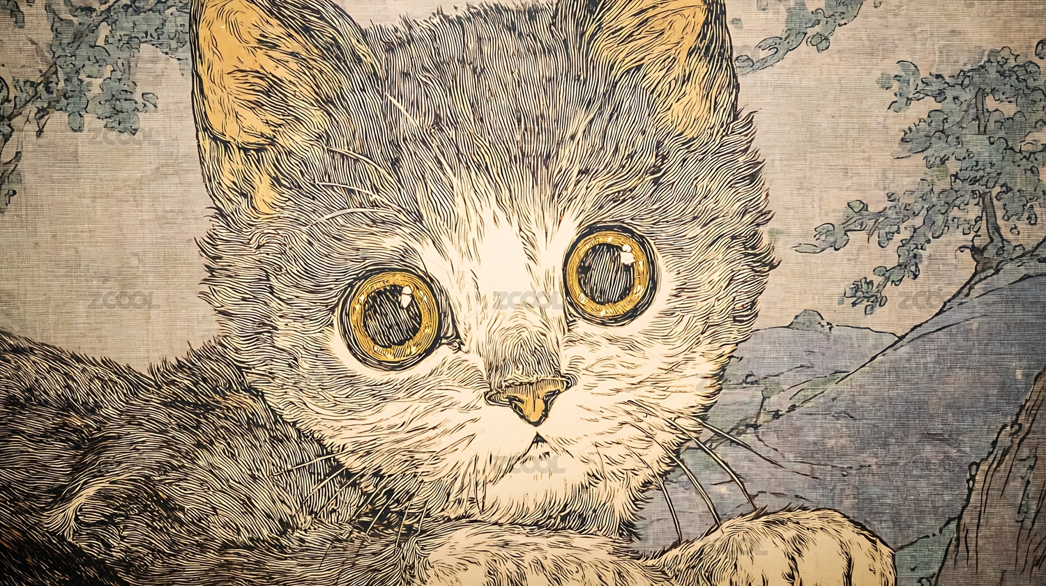 现代彩色猫猫油画插画背景海报抽象装饰画