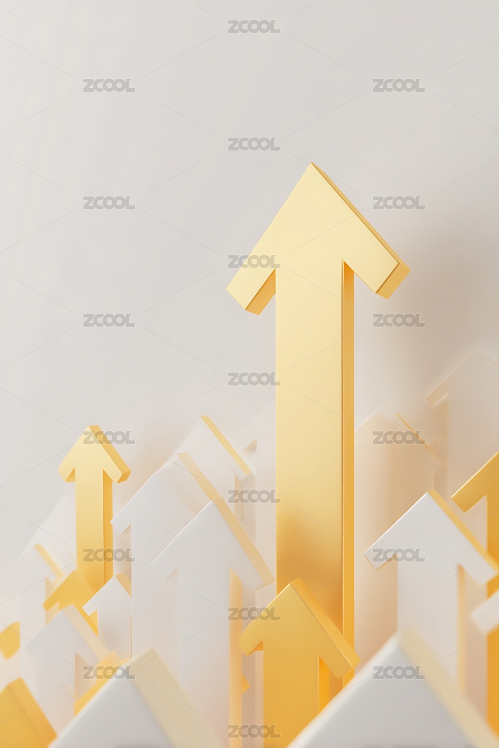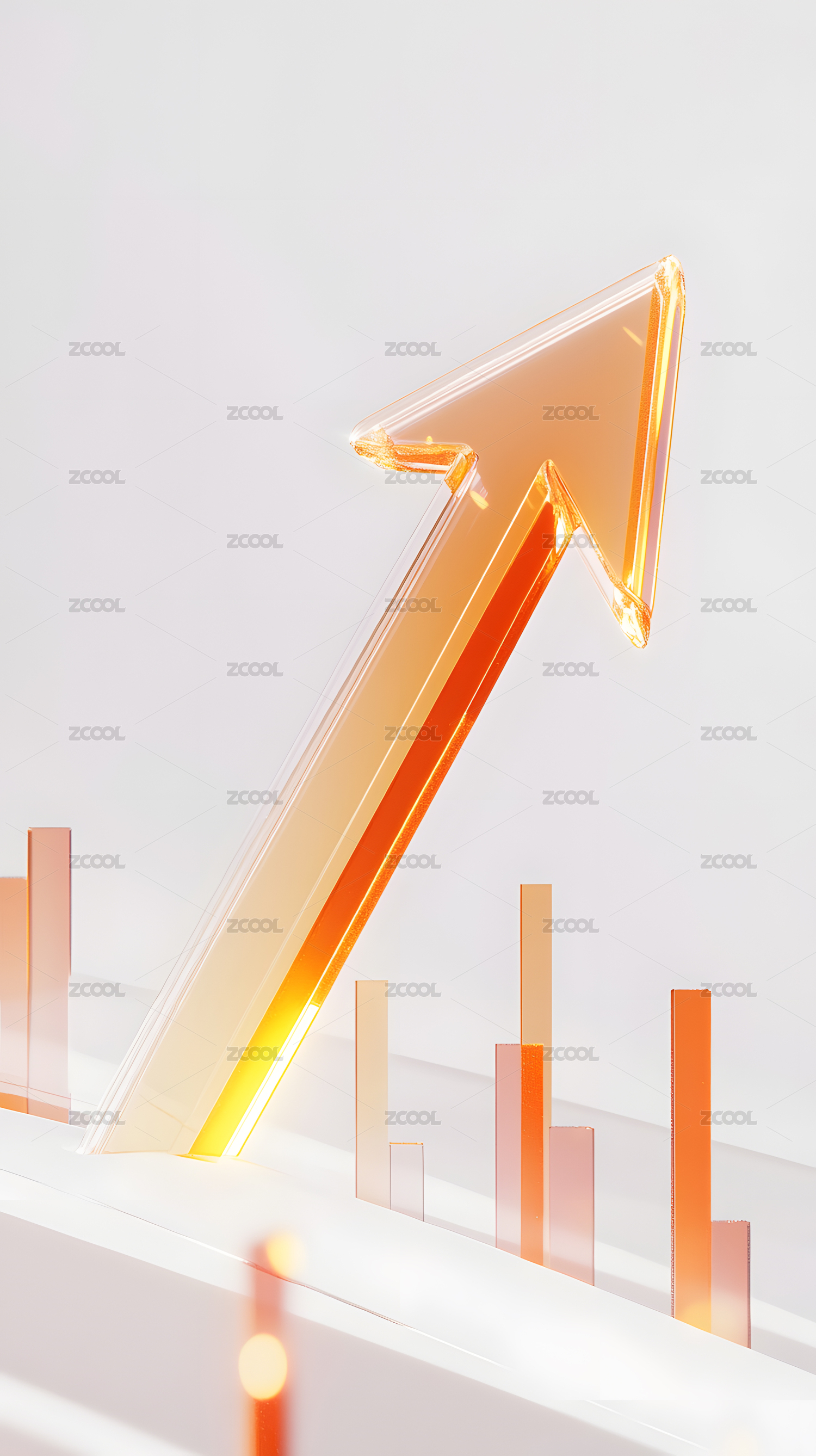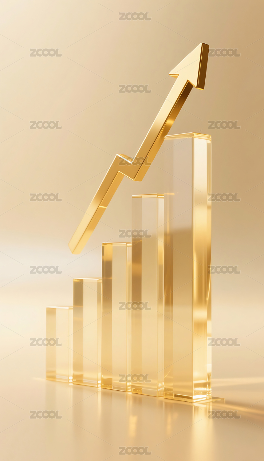 金色渐变玻璃质感金融柱状图增长箭头背景