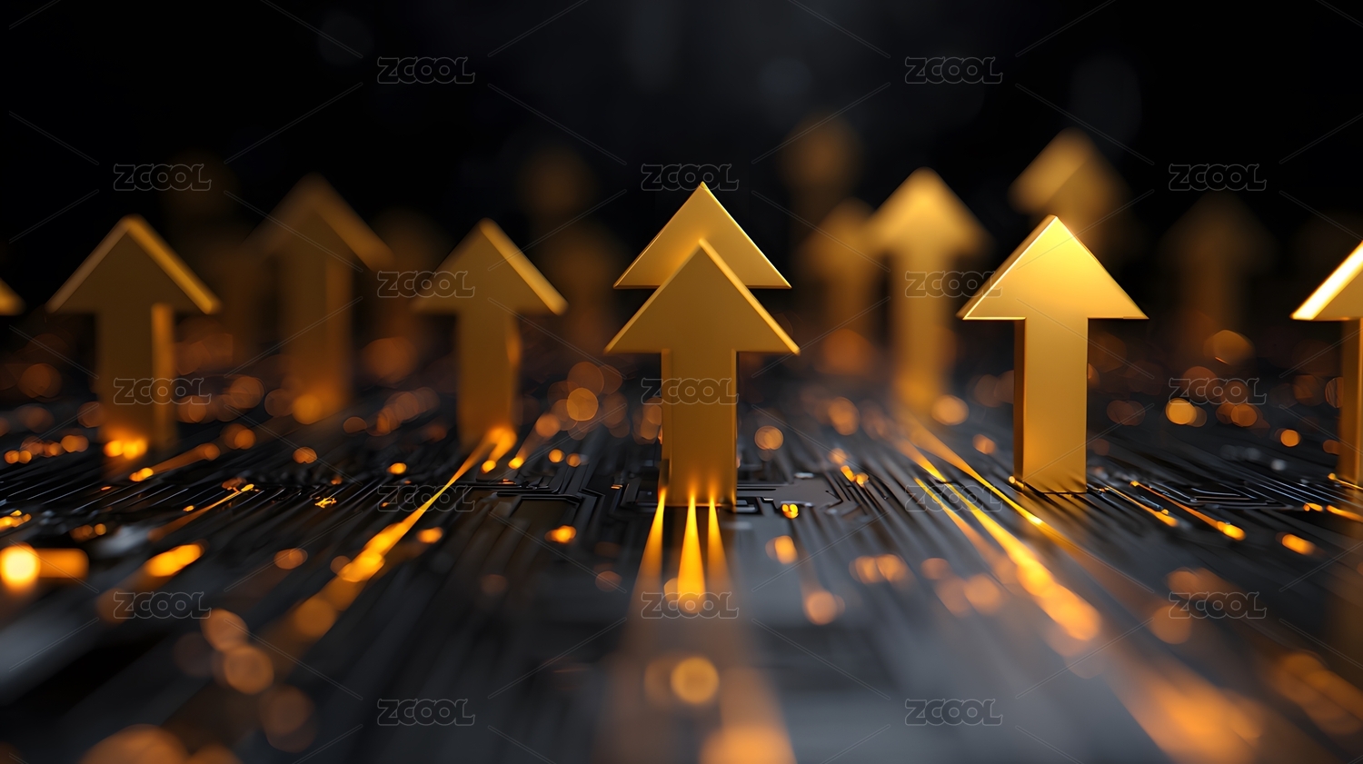 金属,立体,发光,金色,闪耀,前景,光芒,黑暗,成功,箭头