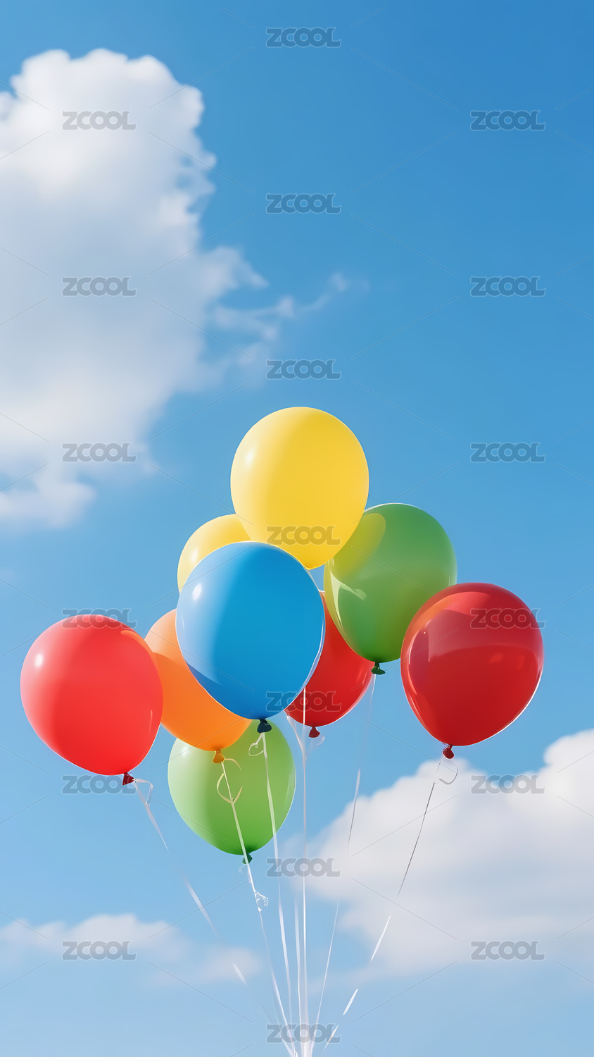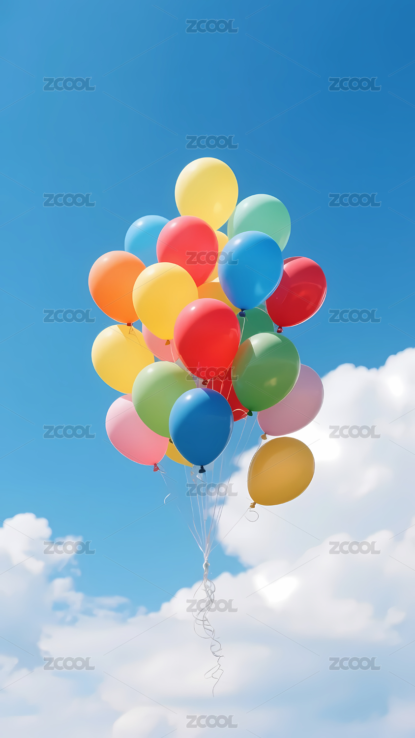 蓝色,绿色,橙色,天空,彩色,白色,粉色,美好,云朵,绳子