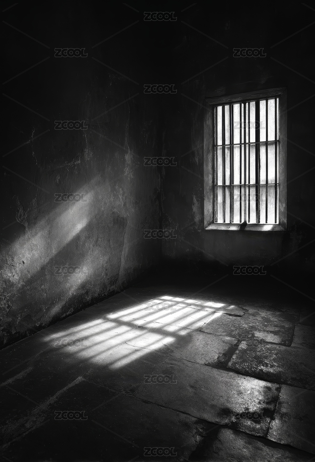 斑驳,旧室,墙壁,剥落,墙面,窗棂,铁窗,栅栏,阳光,光影