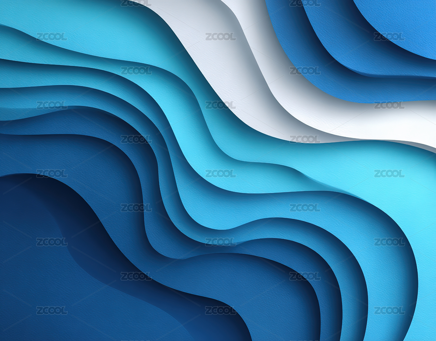 蓝色波浪层叠抽象图案