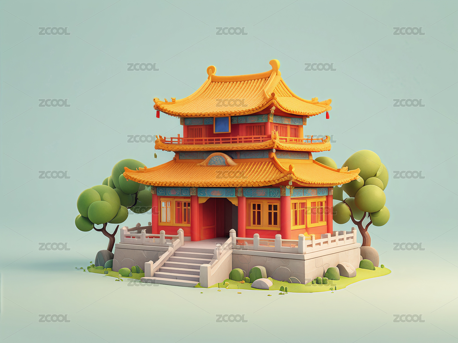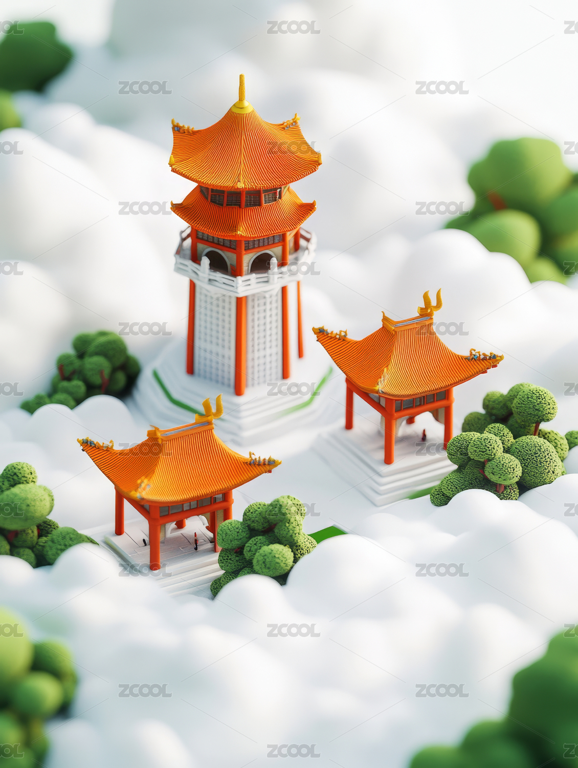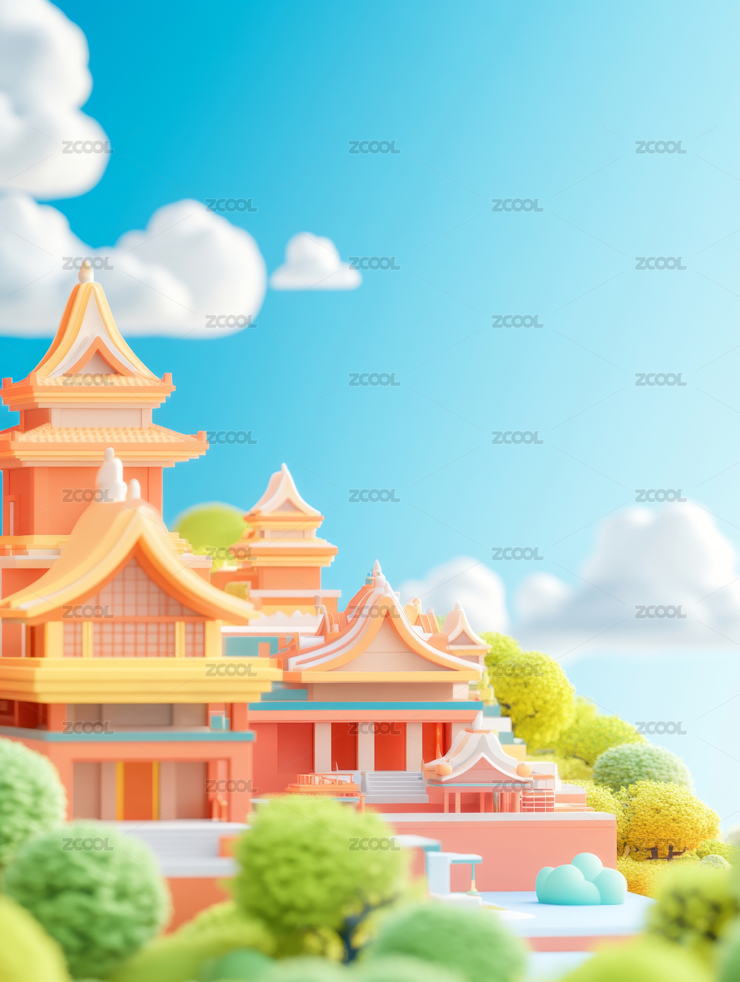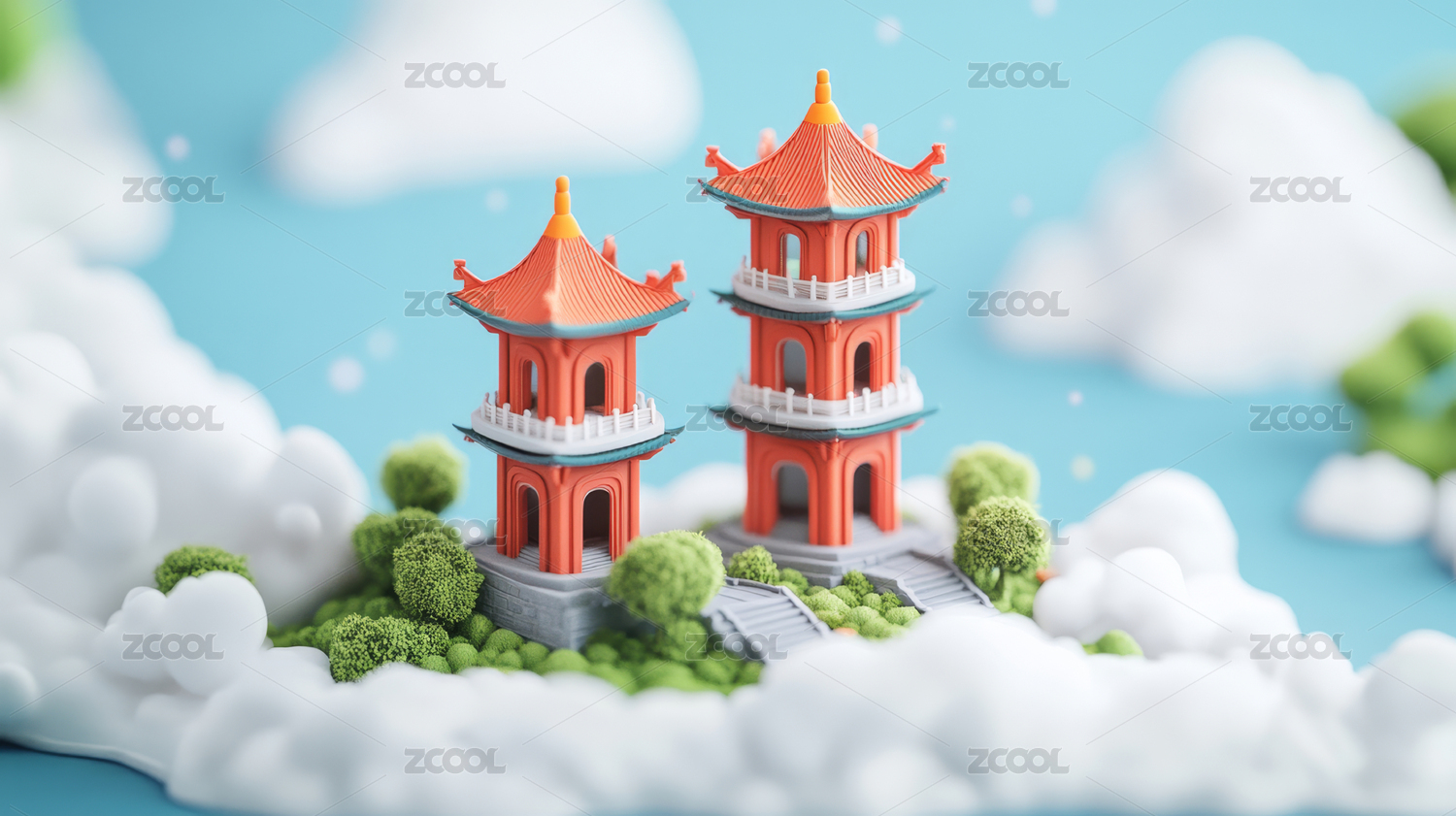 中国风古楼建筑传统国风古建筑国潮插画背景
