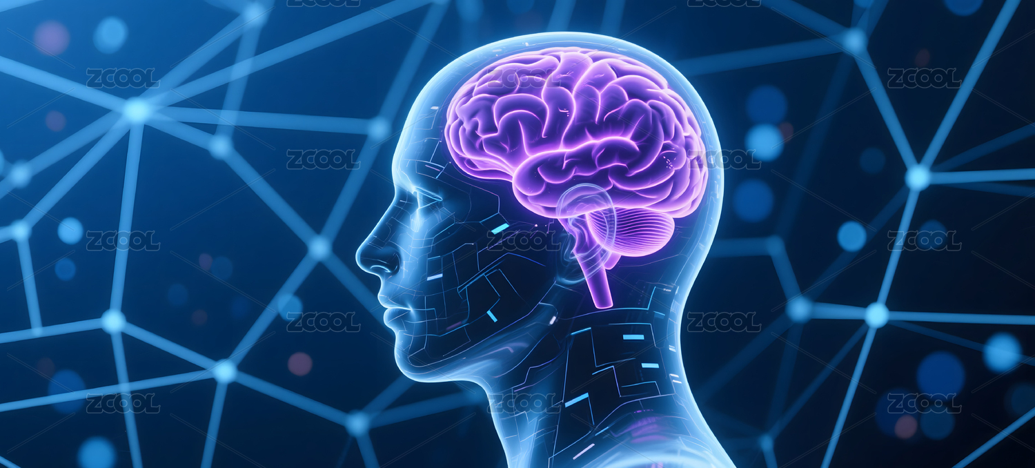 科技,发光,未来,蓝色,紫色,深蓝,侧脸,大脑,轮廓,光斑