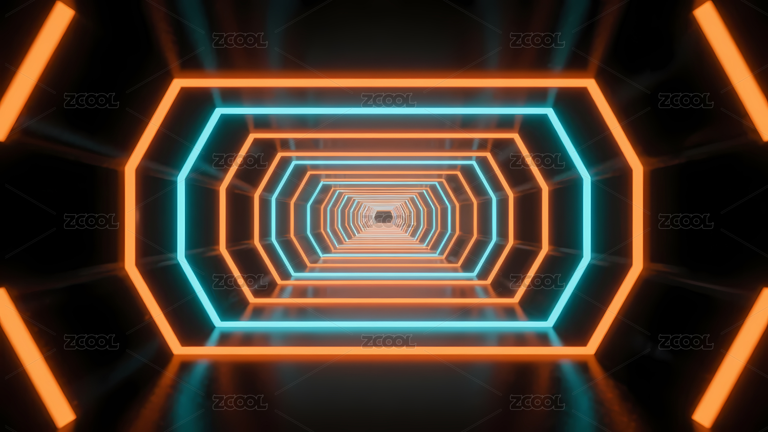 科技,未来,蓝色,橙色,几何,霓虹灯,隧道,深黑,八边形,延伸