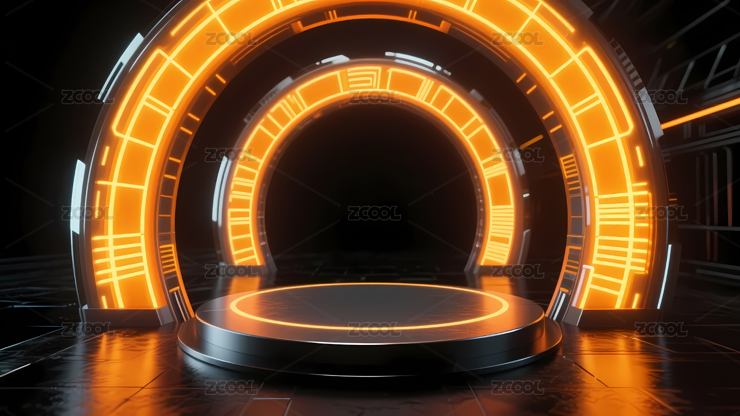 科技,未来,背景,光影,抽象,橙色,圆环,黑色,深邃,隧道