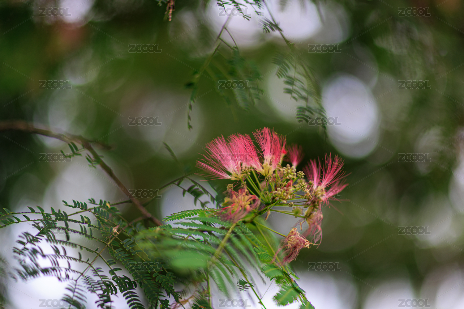 秋天,合欢花,绒花,粉色,花朵,绿色枝叶,植物,花卉,自然,柔美