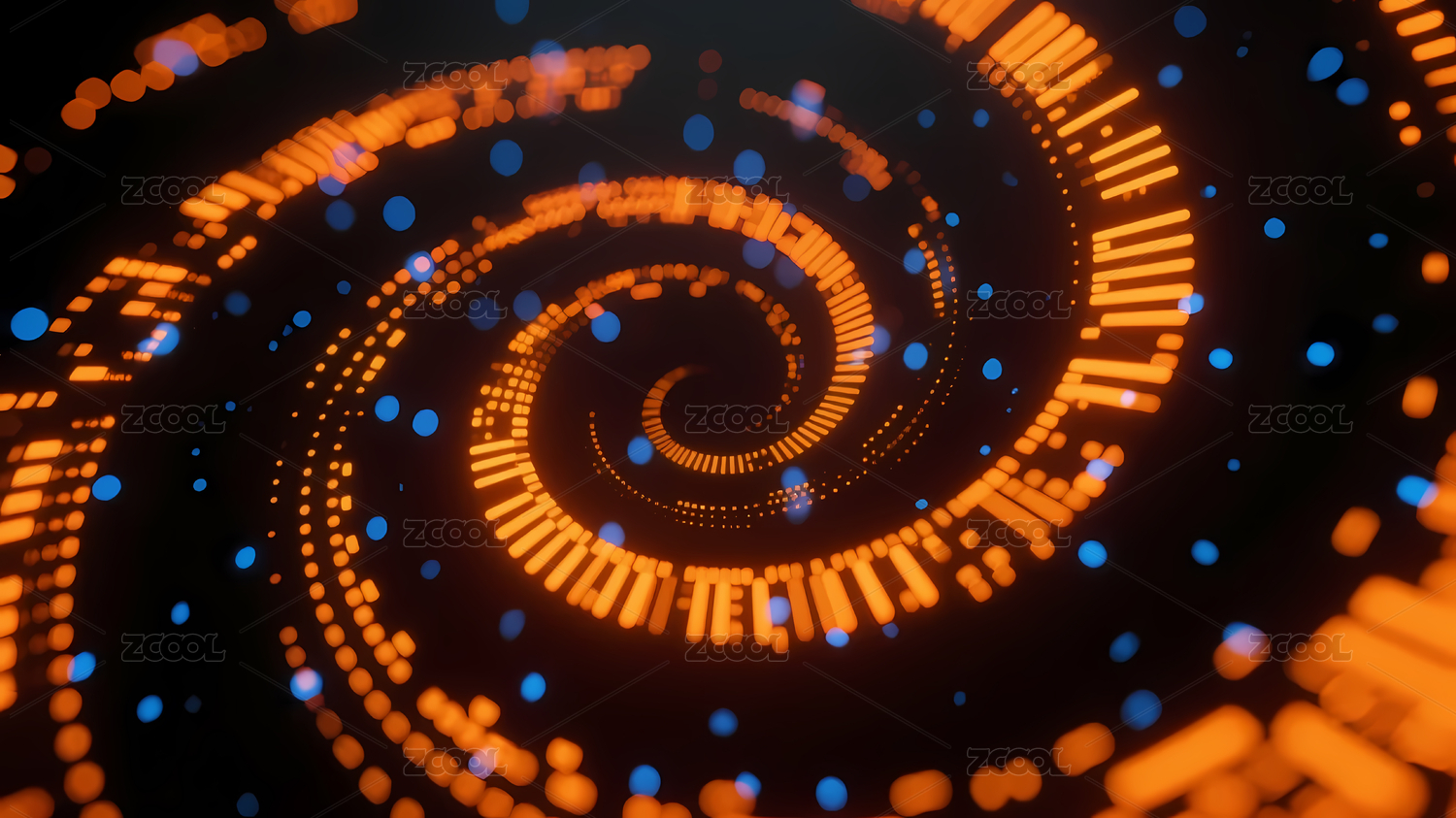 蓝色,科技,光点,背景,深色,视觉,螺旋,橙色,动态,效果