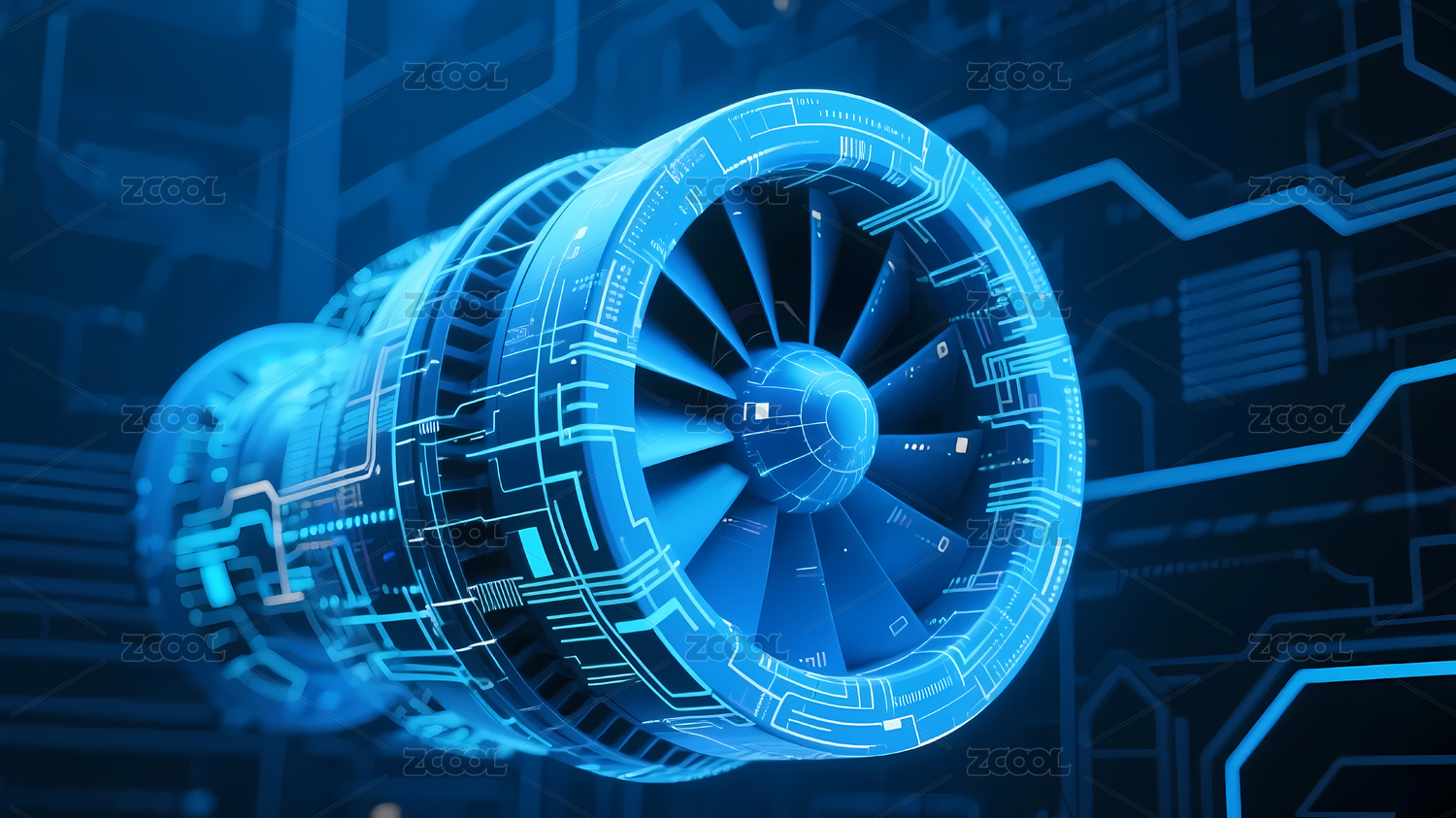 未来,蓝色,科技,光点,网格,电路,涡轮,黑色,发动机,高科技