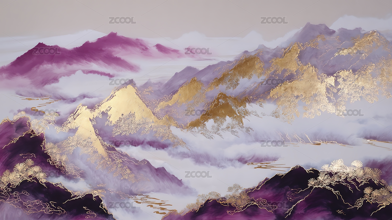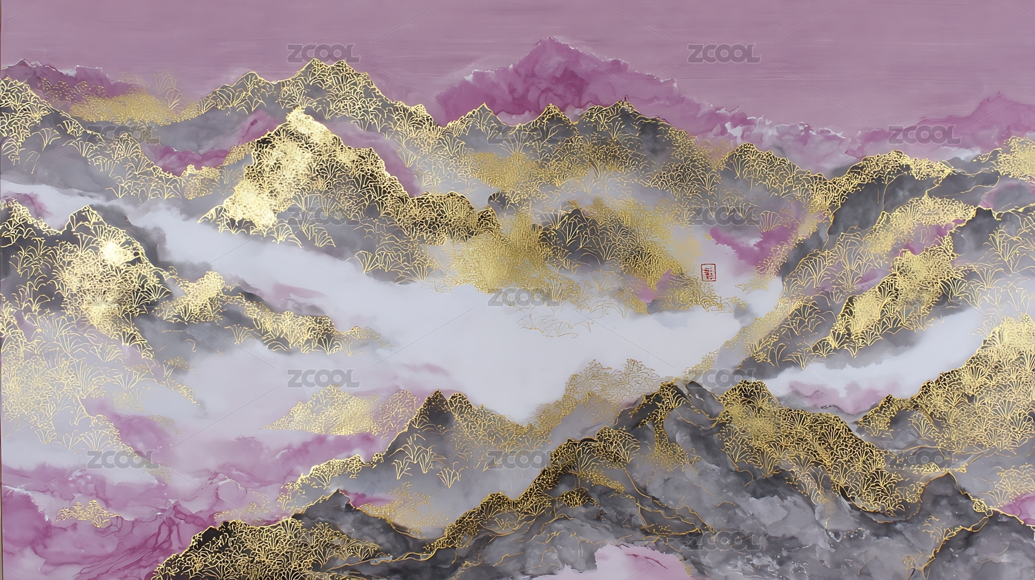 绘画,自然,艺术,静谧,云雾,风景,写意,水墨,金色,意境