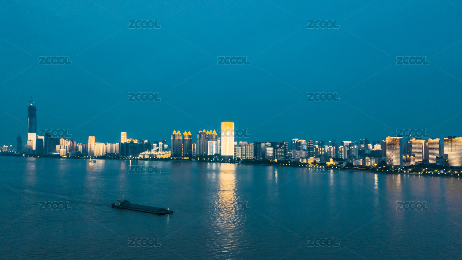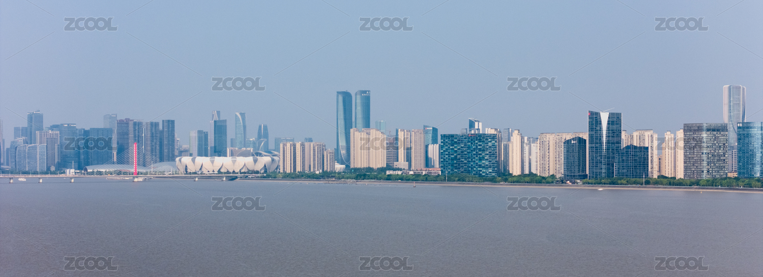 钱塘江边杭州城市天际线 滨江奥体钱江新城