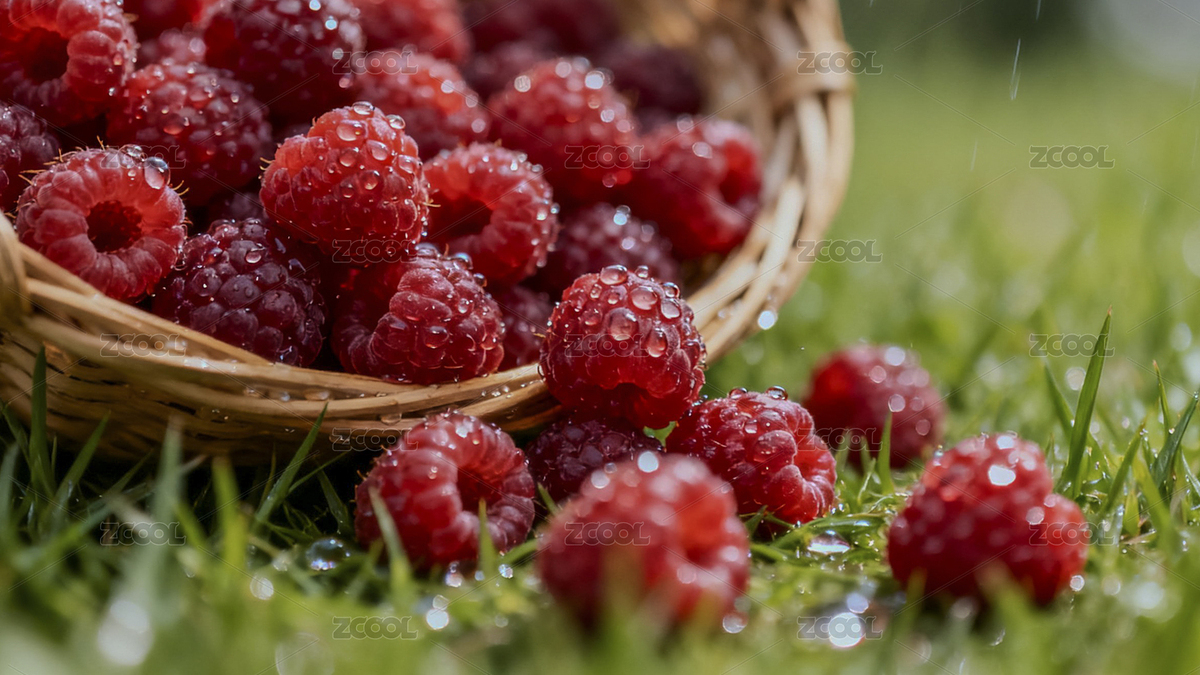 覆盆子,树莓,水果,浆果,新鲜,美味,营养,健康,草地,露珠