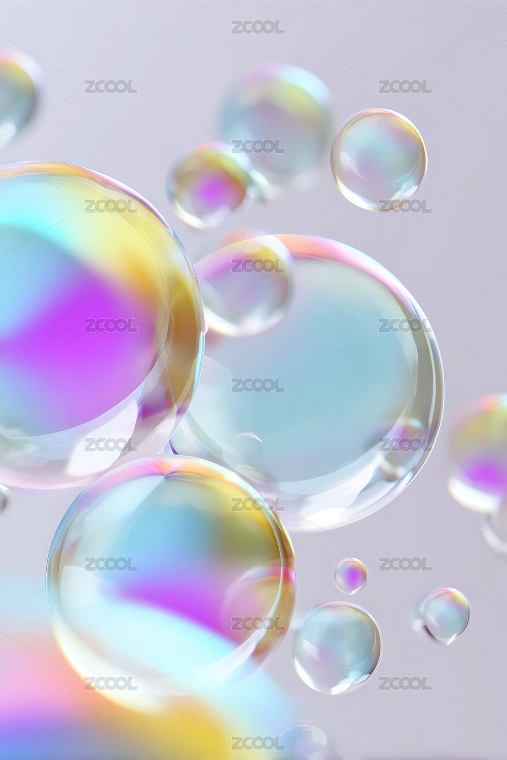 数码多巴胺彩色肥皂泡几何抽象图形海报背景