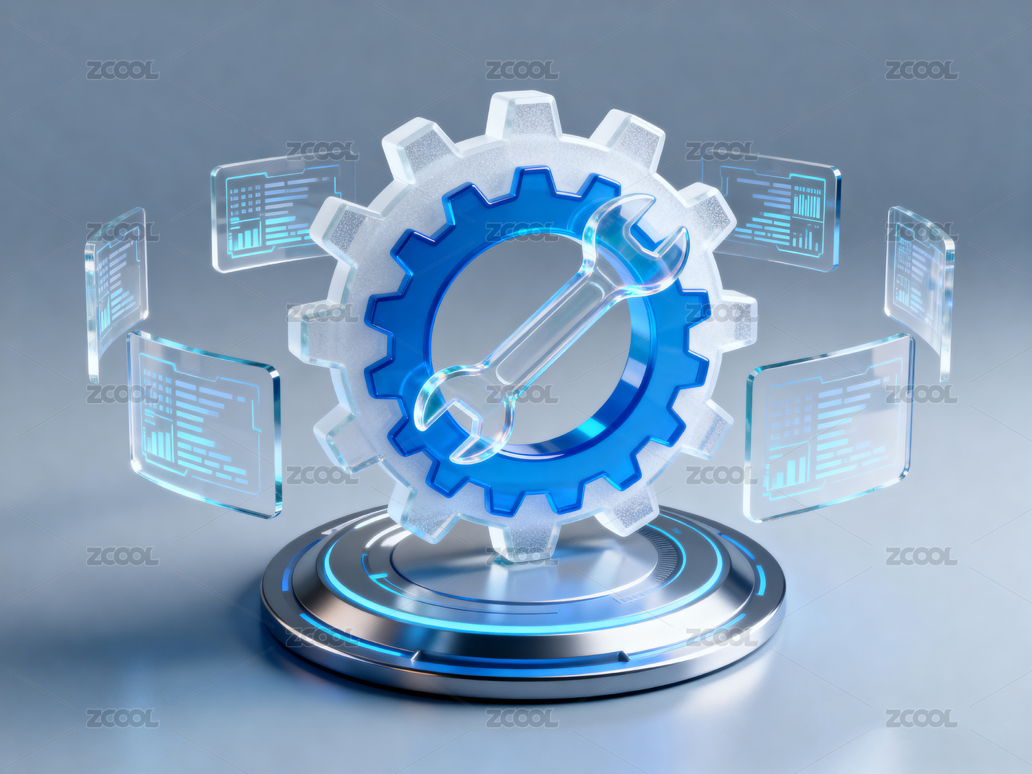 银色齿轮映衬蓝色光带
