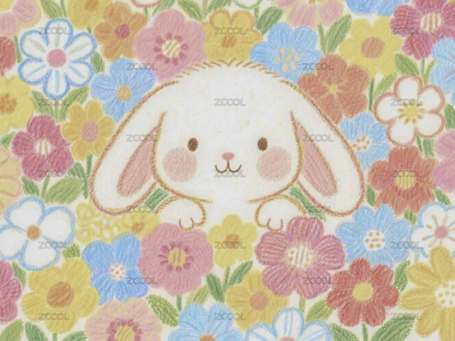 兔子,卡通,可爱,胡萝卜,鲜花,童趣,儿童,插画,动物,萌宠