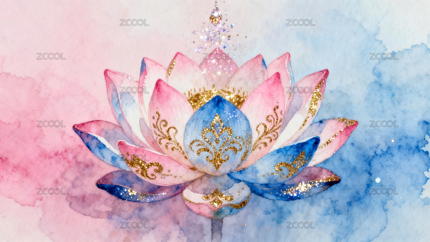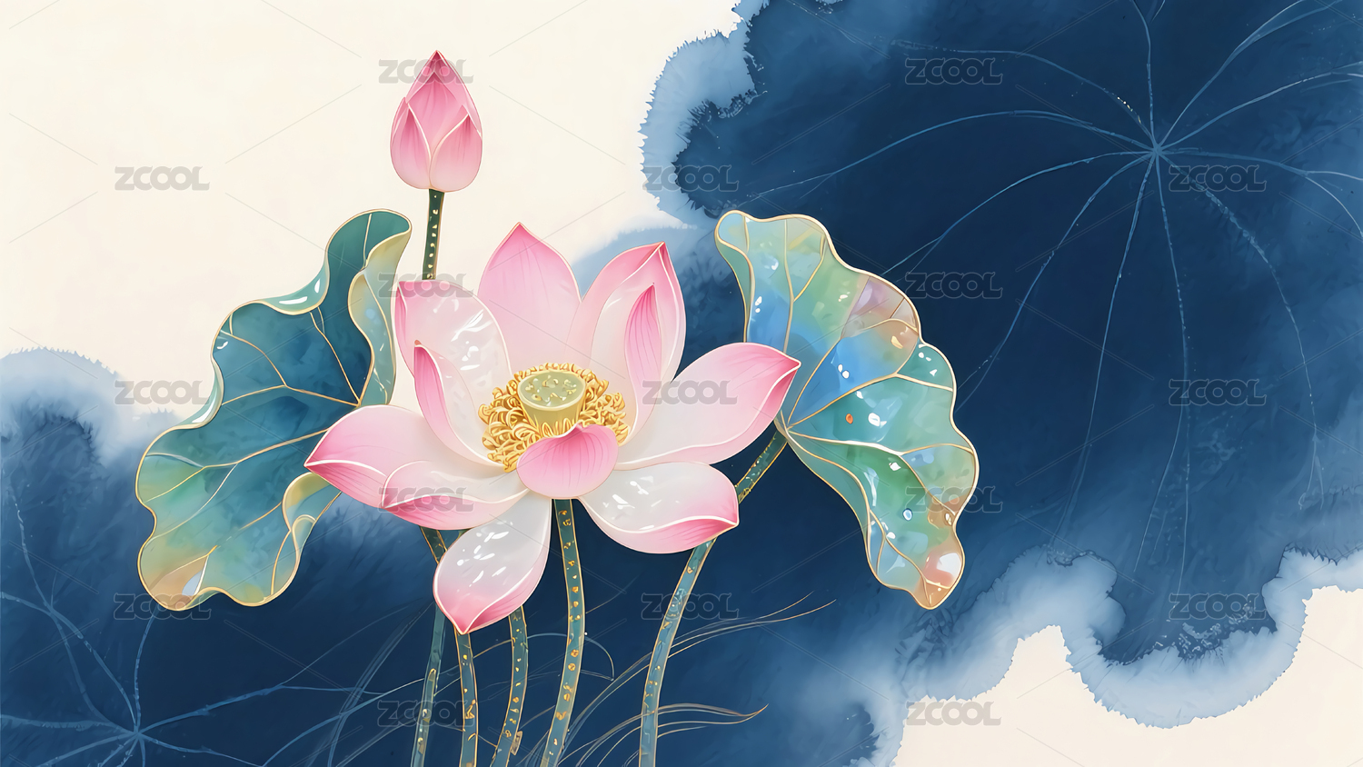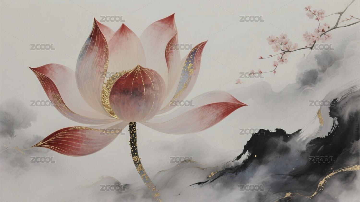 莲花,荷花,水墨,意境,禅意,花卉,艺术,绘画,国风,金色
