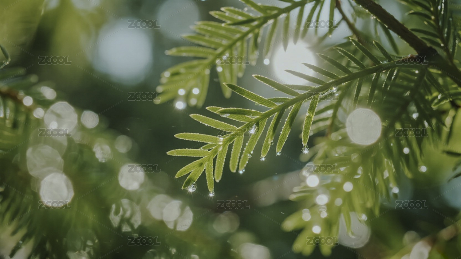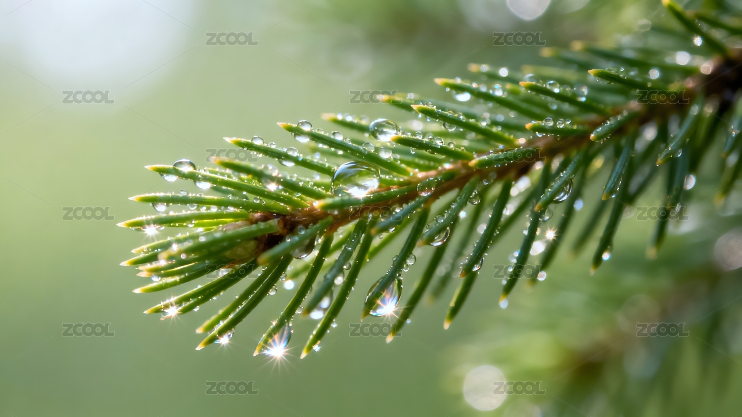 松枝水滴清新自然景观展示场景