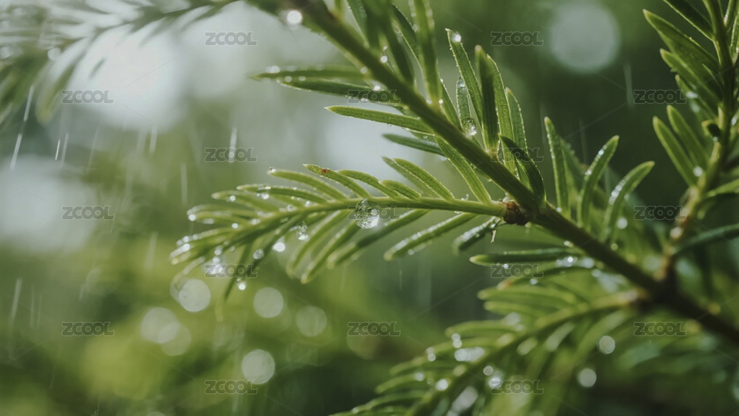 松树,松针,雨滴,露珠,绿色,植物,特写,清新,自然,晶莹