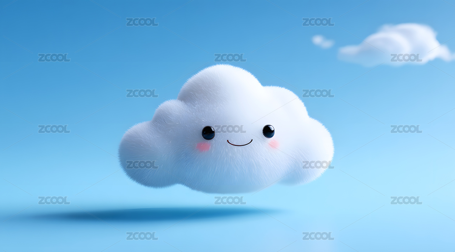 3D可爱卡哇伊笑脸云朵图标,透明背景