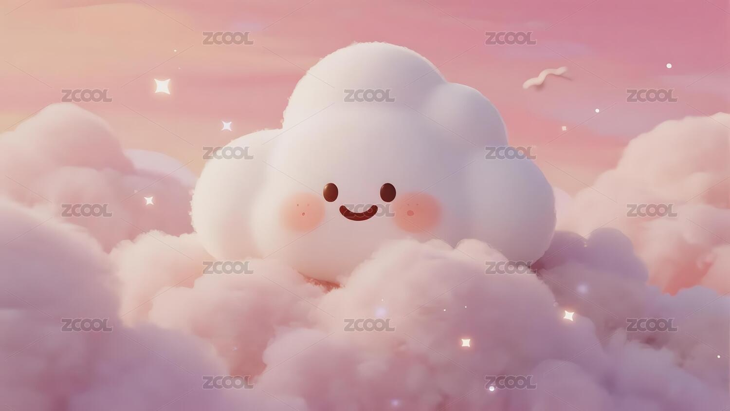 云朵,可爱,卡通,梦幻,星星,治愈,天空,微笑,粉色,蓝色