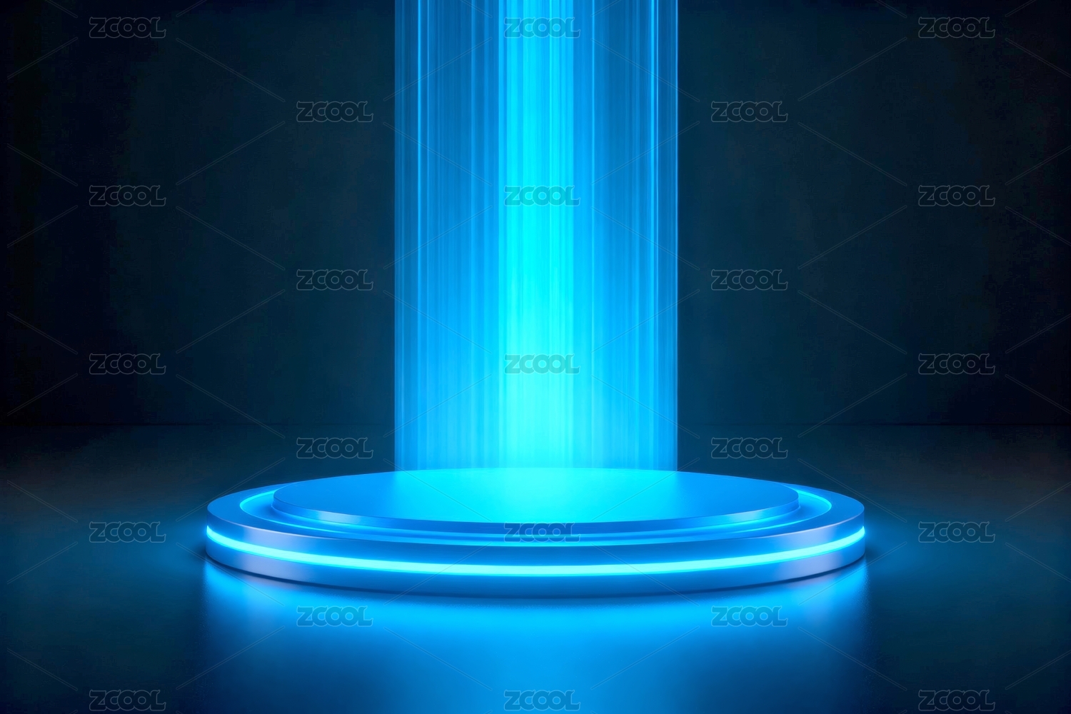 蓝色霓虹灯抽象空场景光束射灯光线概念插图