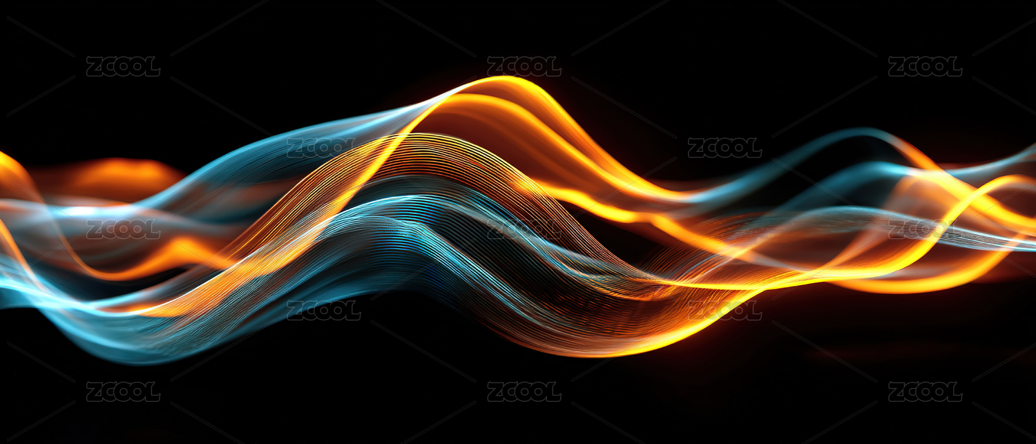 黑底上舞动的蓝橙流光线条