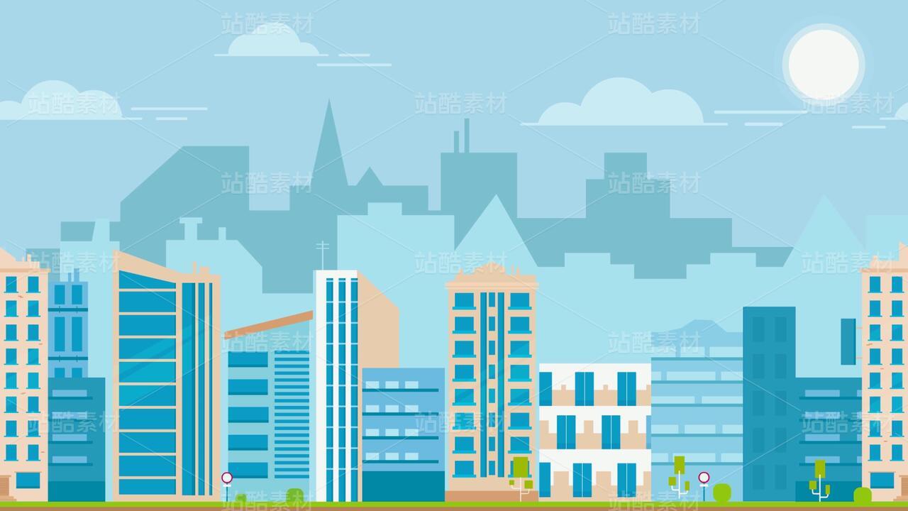 循环扁平化城市风光动态素材