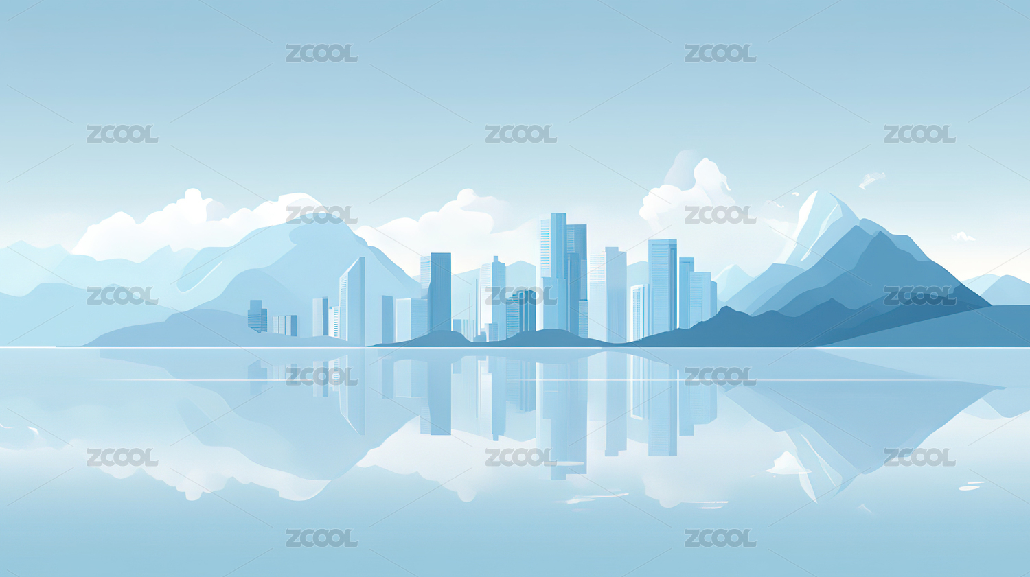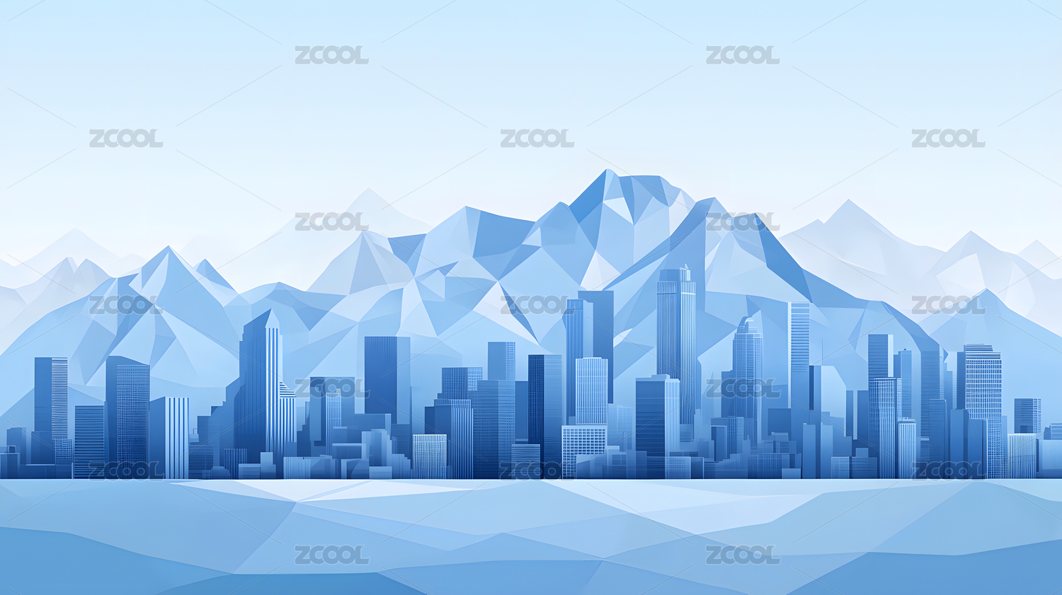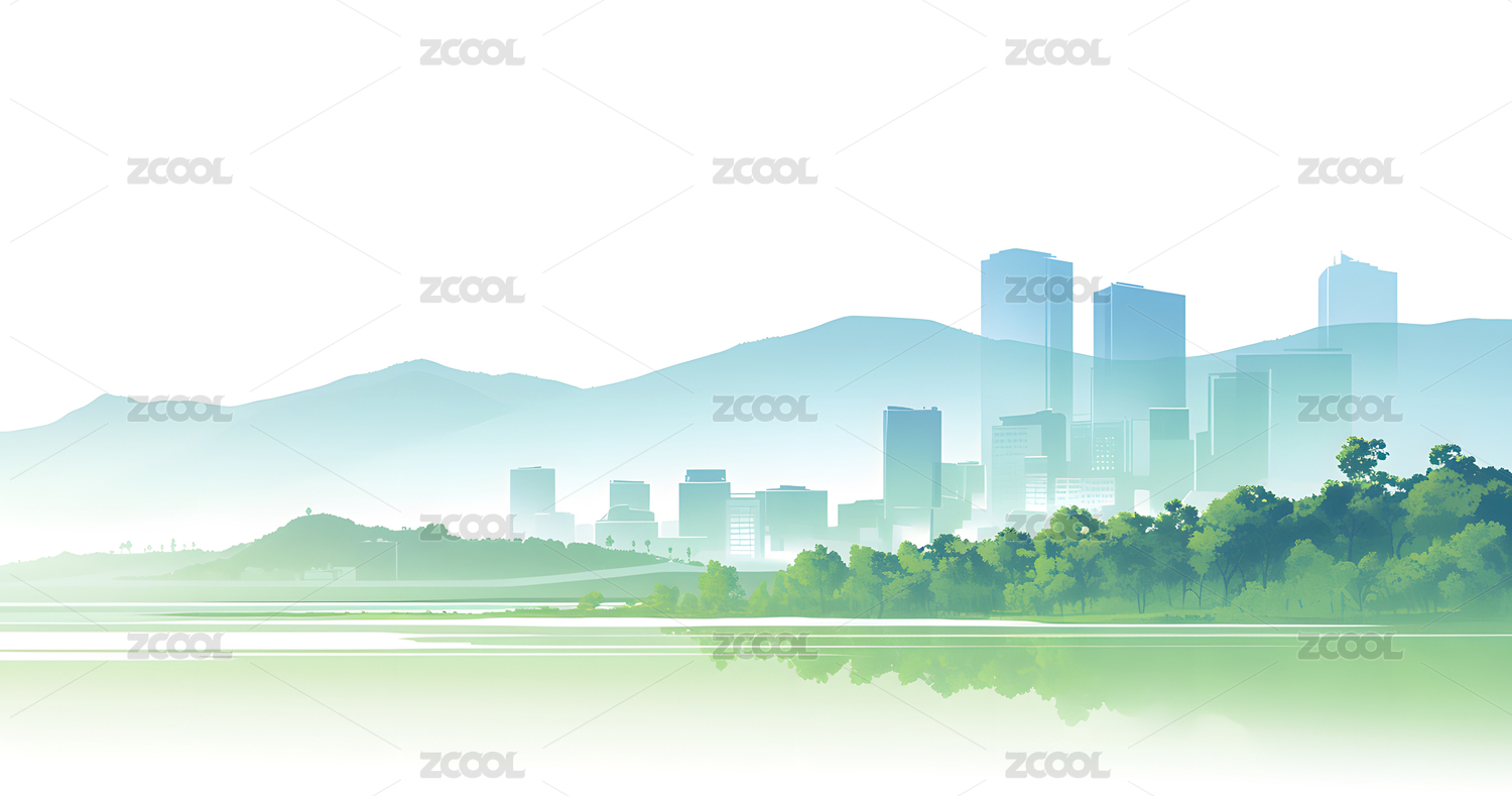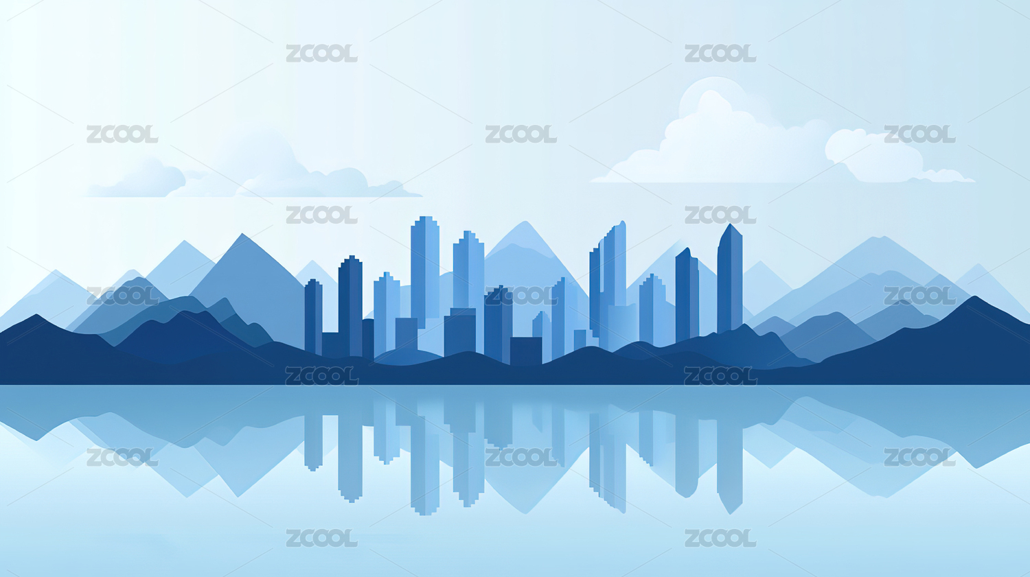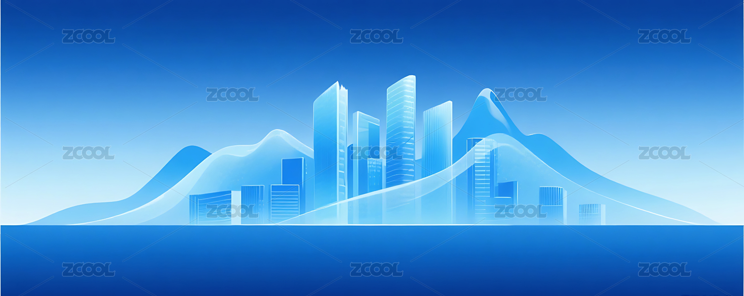 蓝色渐变简约半透明城市建筑山峰背景