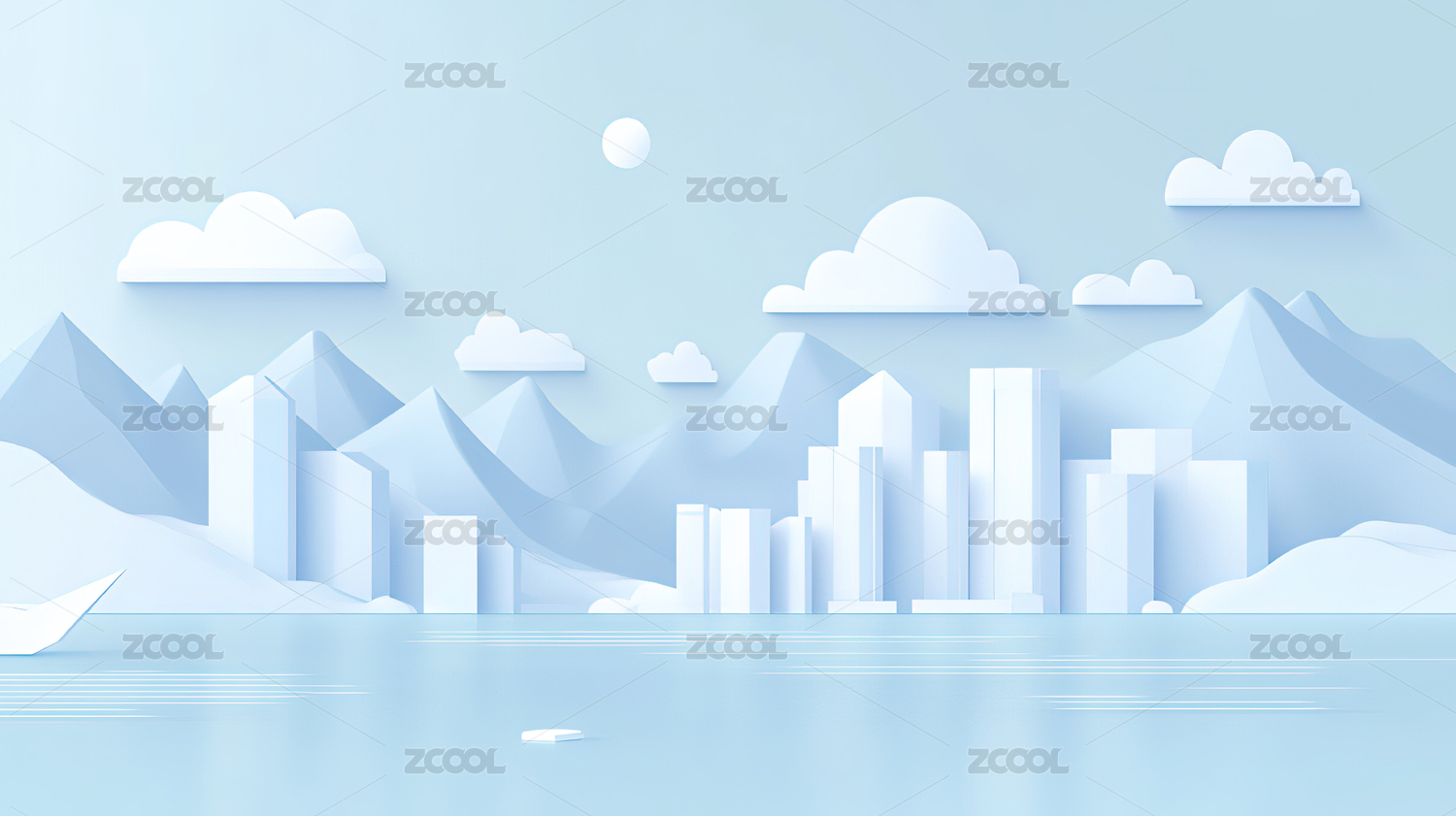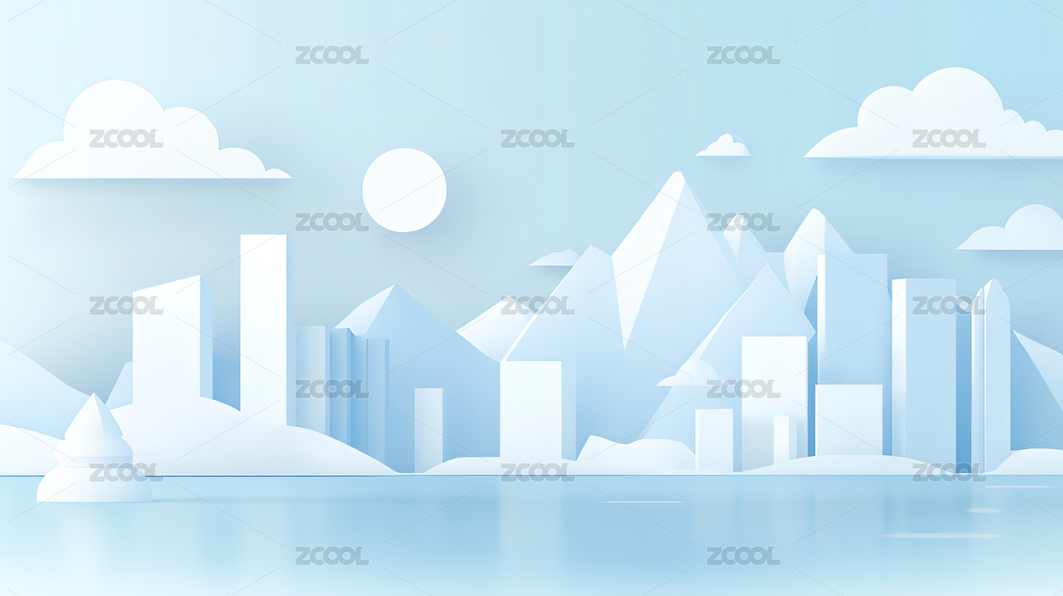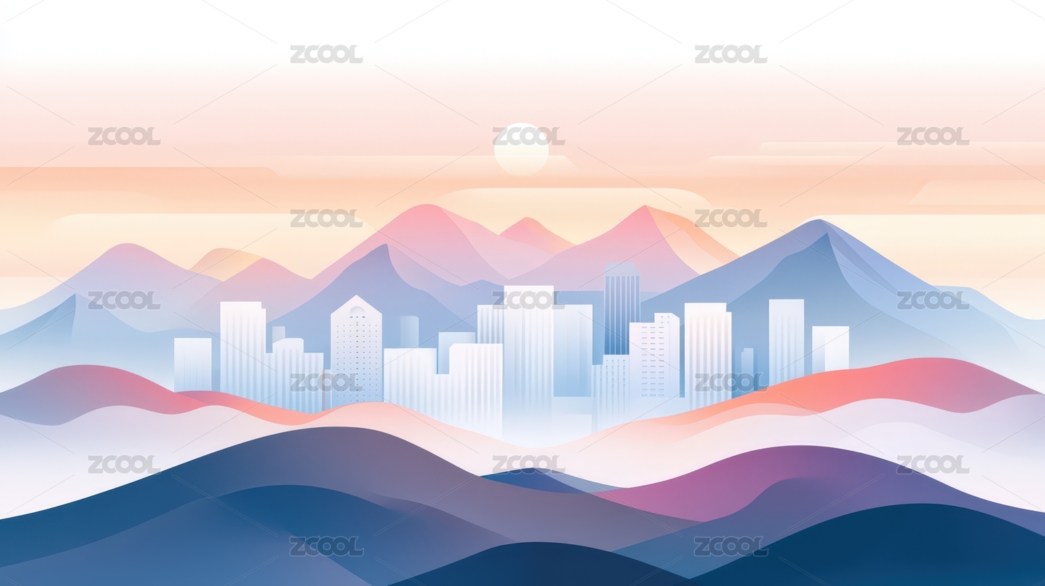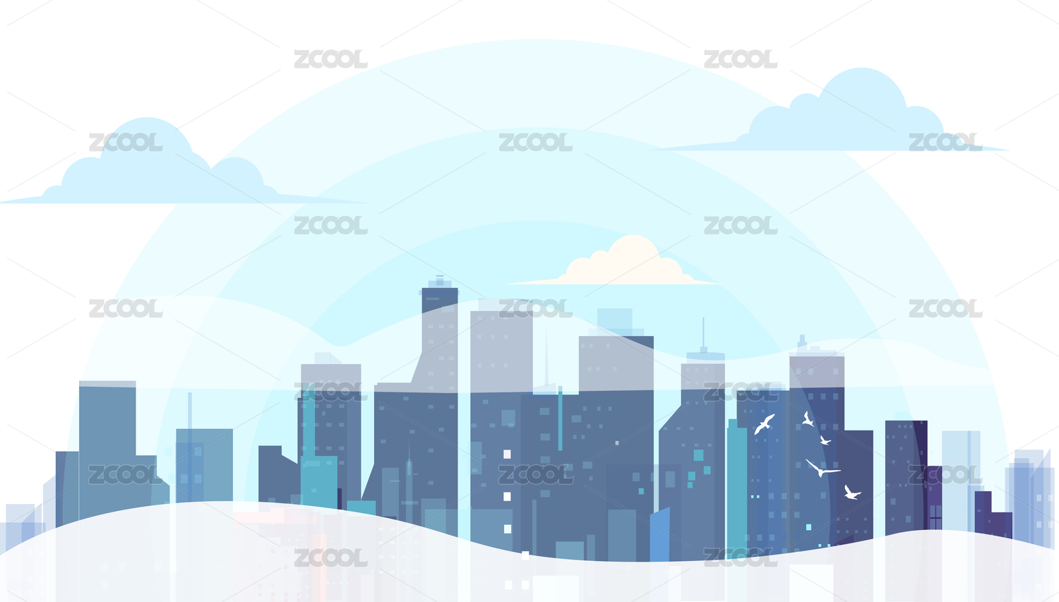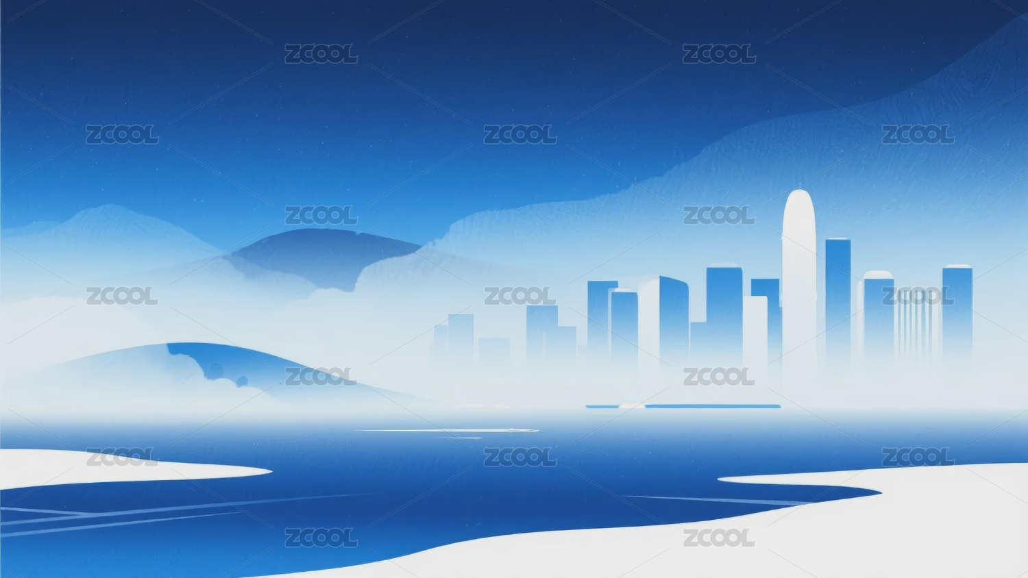 蓝色渐变简约半透明城市建筑山峰背景