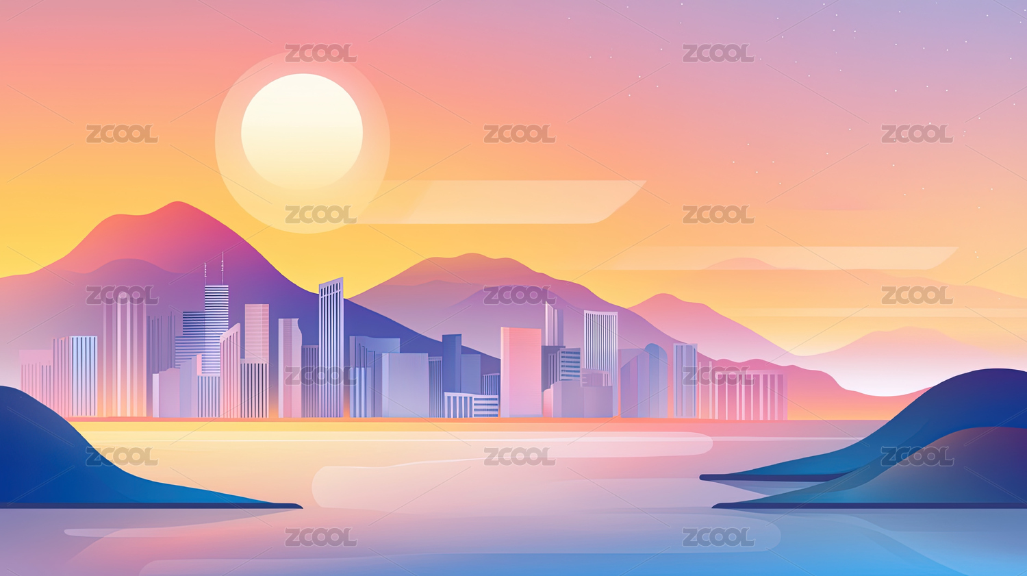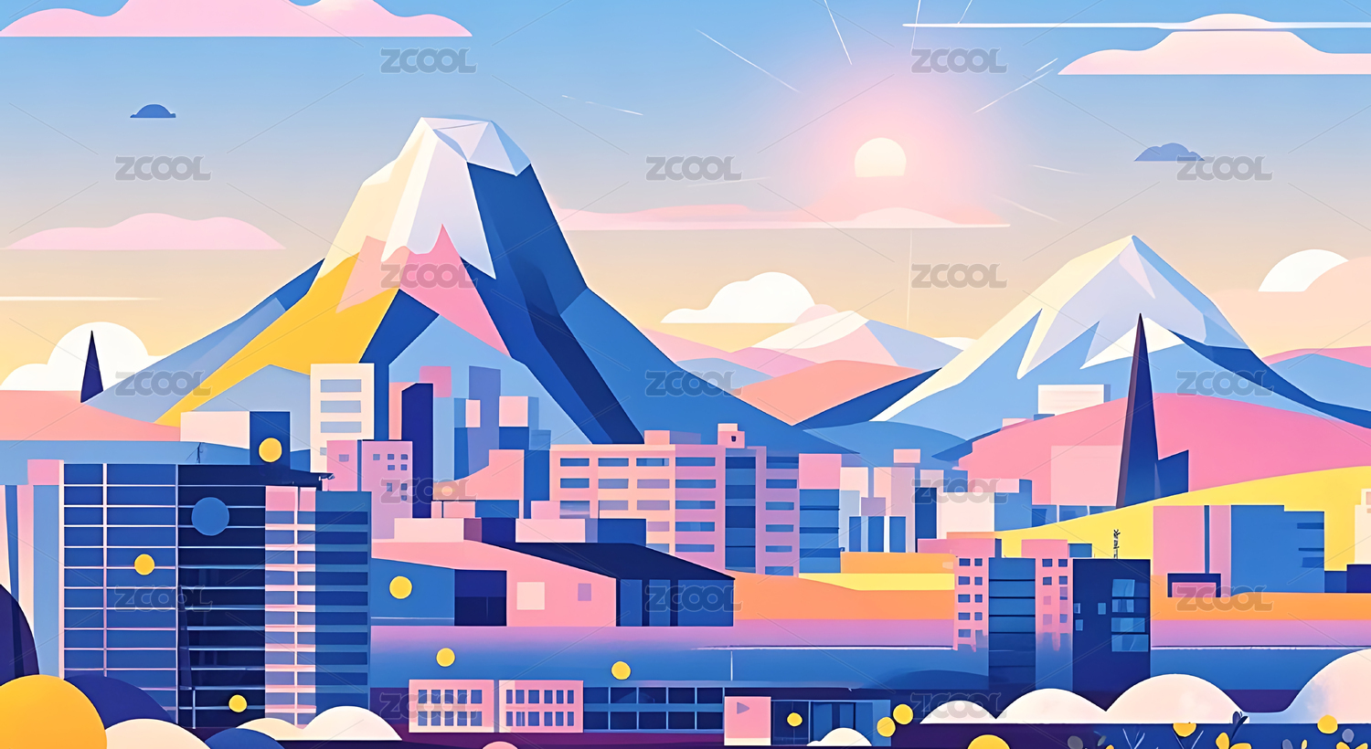 山峦日出都市景象
