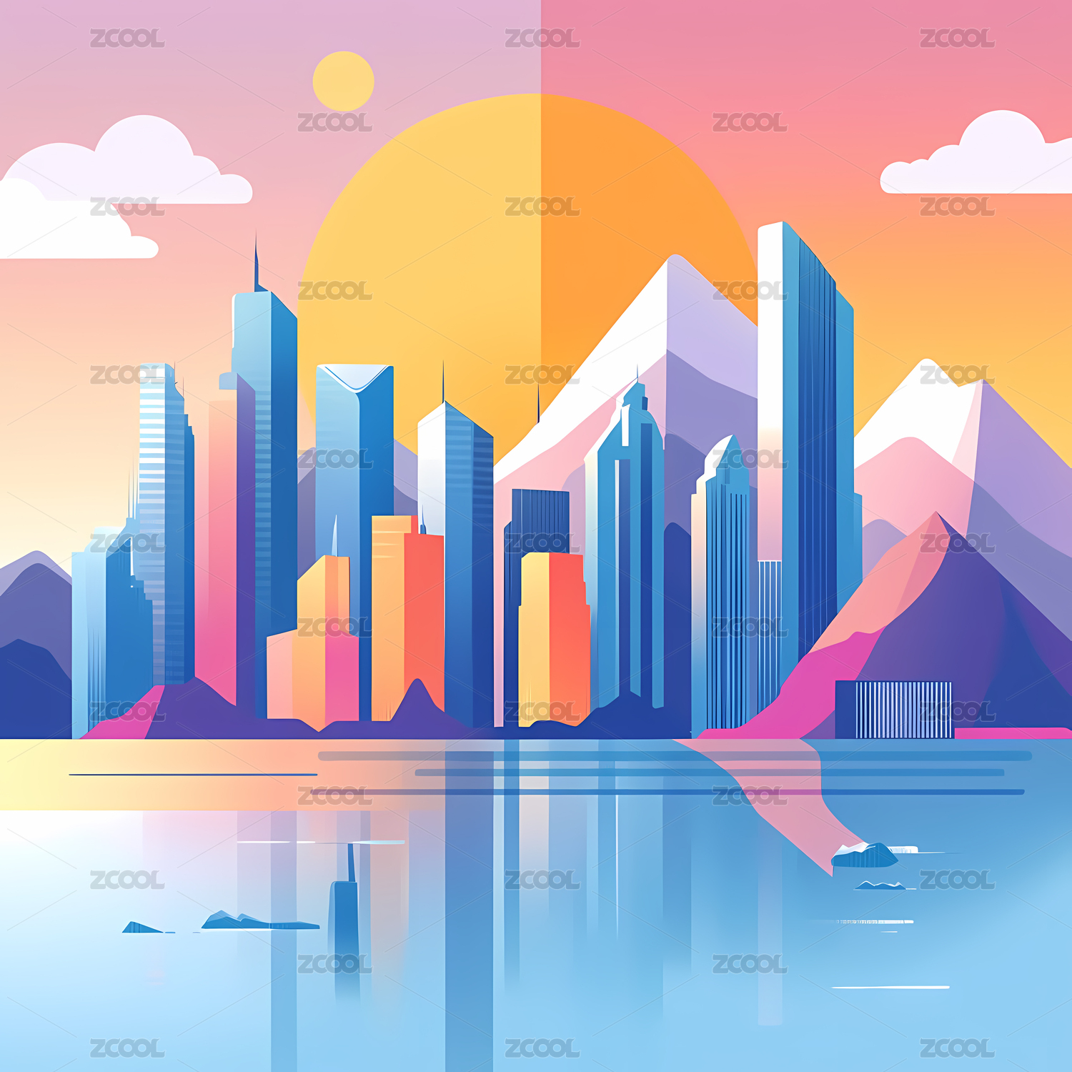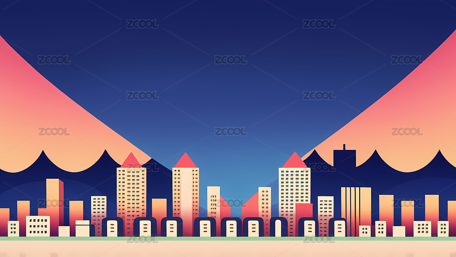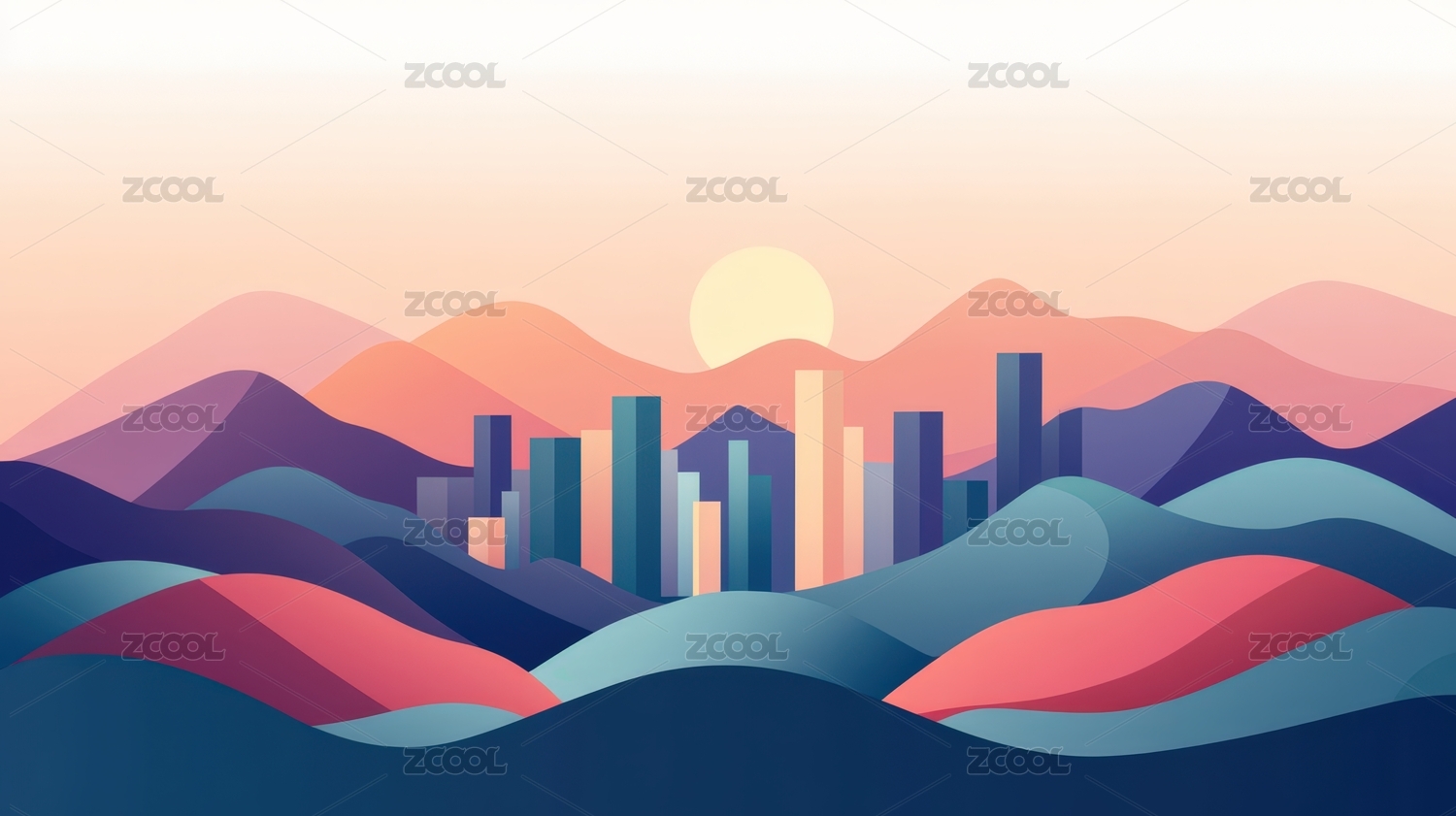 扁平抽象城市建筑插画