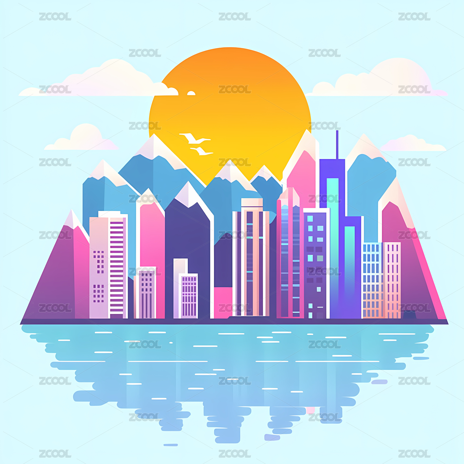 唯美城市建筑插画
