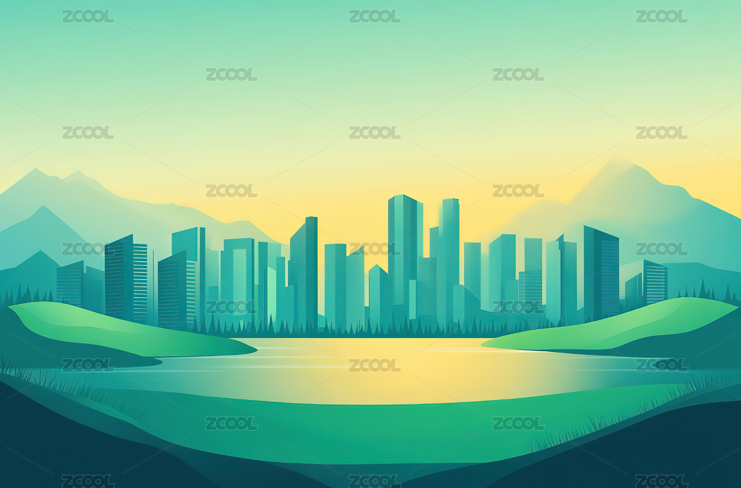 未来城市生态环境插画