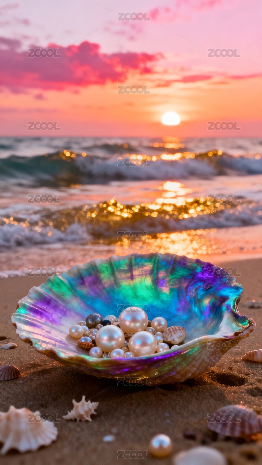 珍珠贝壳梦幻沙滩珠宝场景