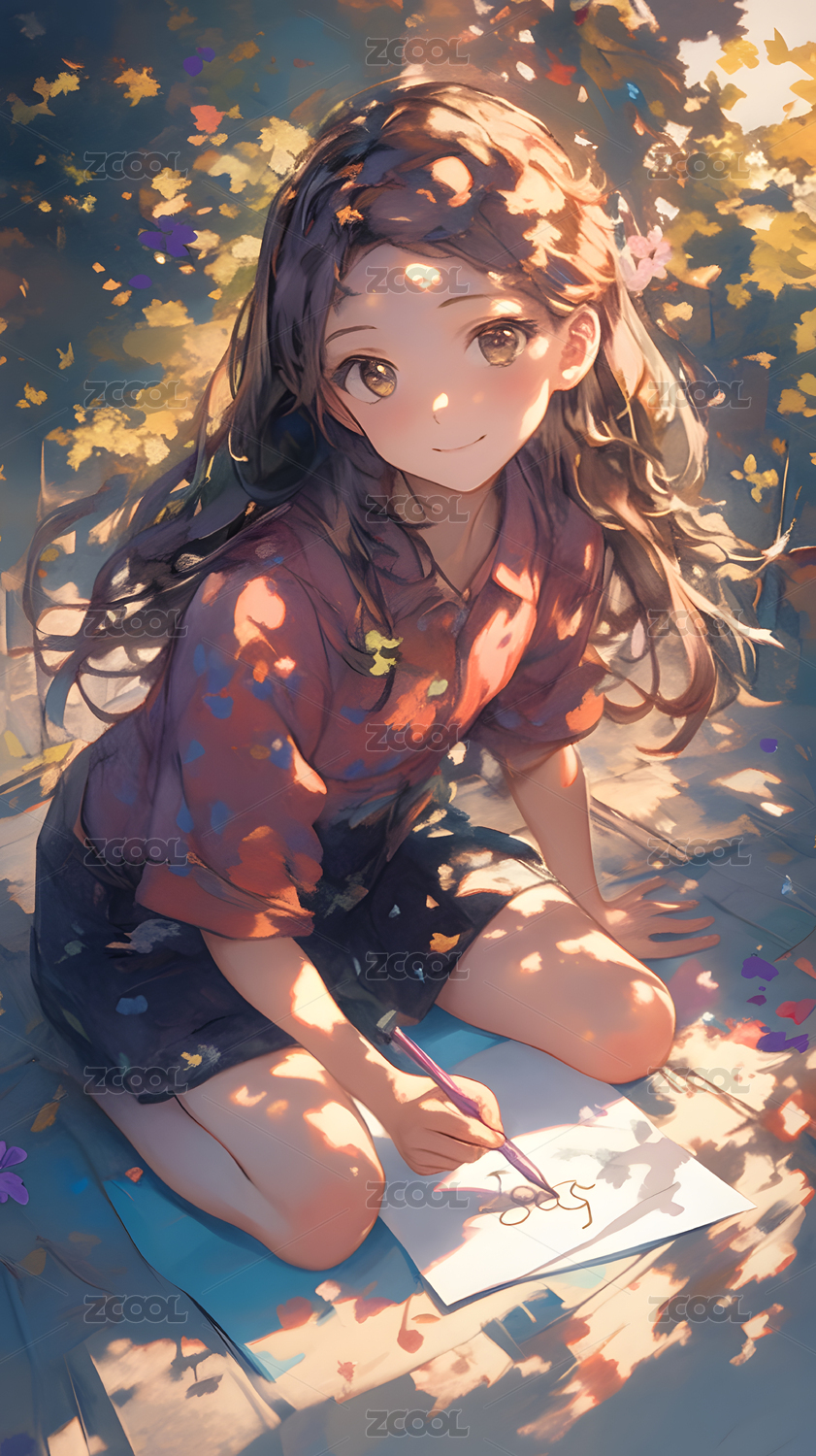 阳光下的微笑的卡通少女