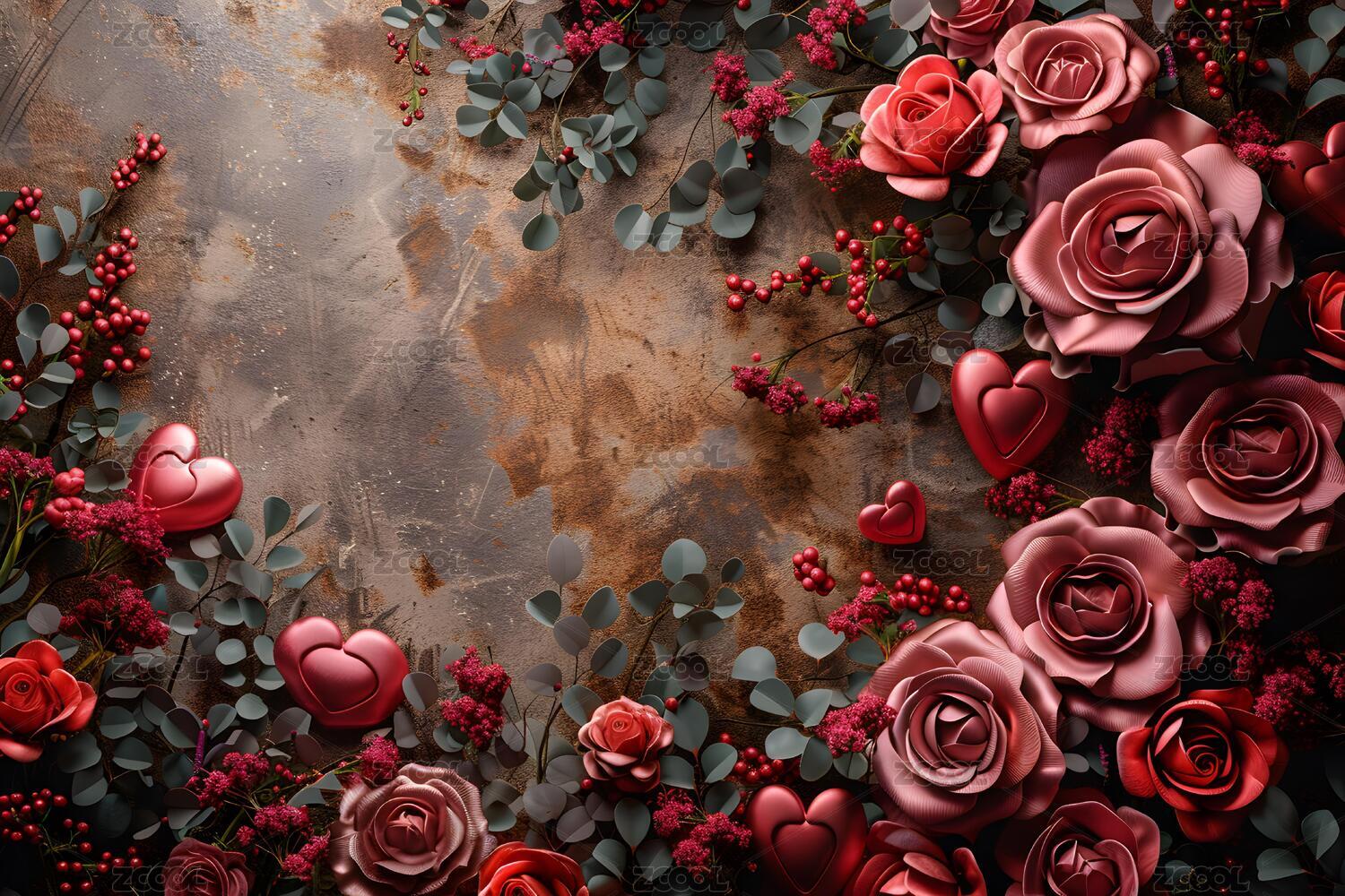玫瑰与心形装饰