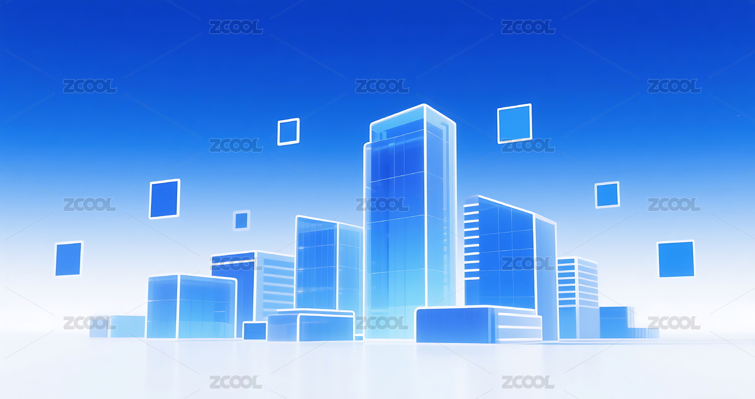 蓝色商务科技未来玻璃质感图形设计城市建筑