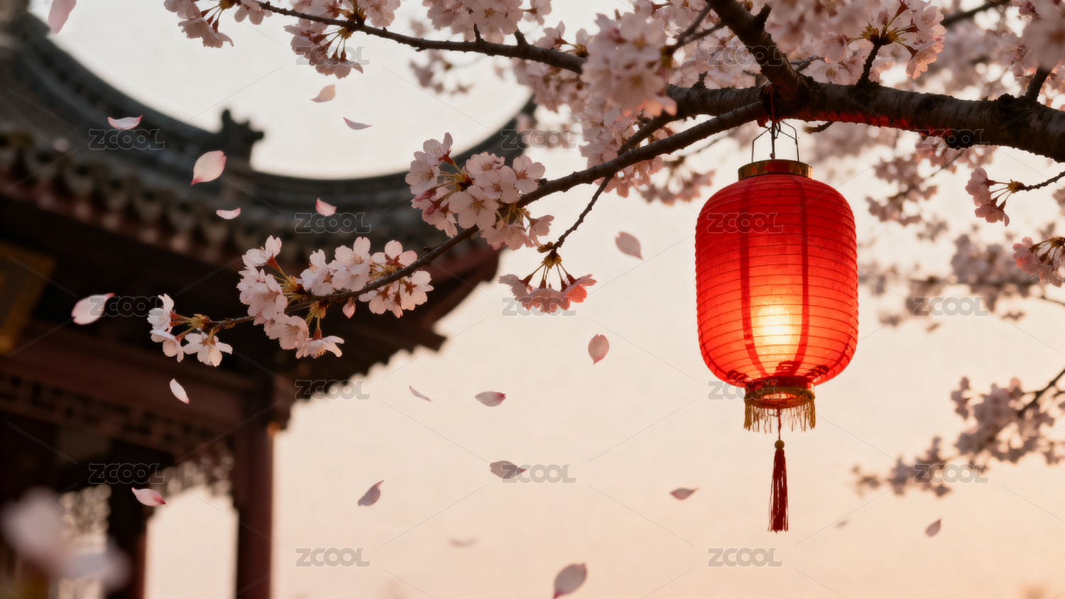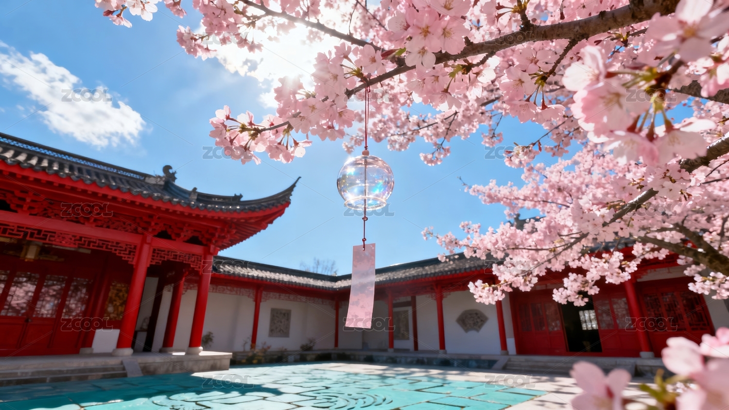 主视觉,商业,壁纸,装饰,清新,粉色,风铃,樱花,古建筑,春季