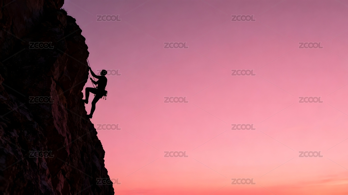 攀岩者剪影与日落