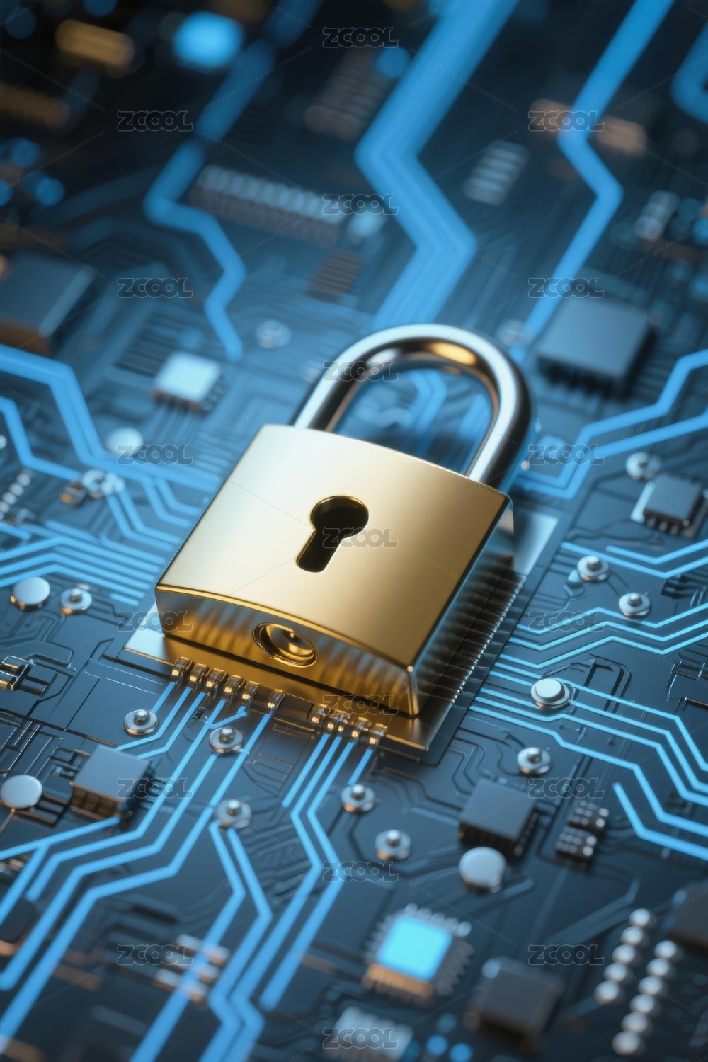 科技感锁与电路板安全主题