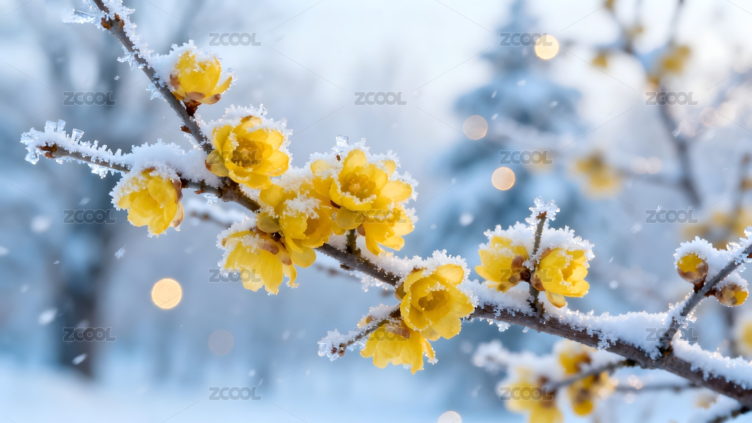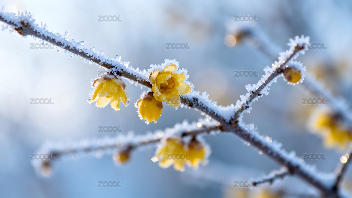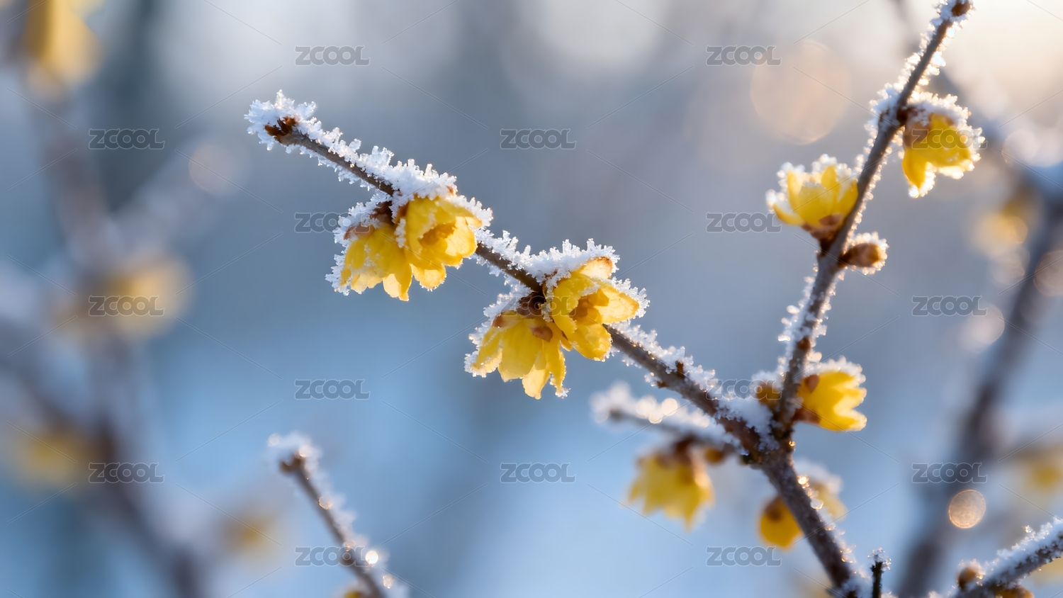花,花朵,植物,自然,枝条,梅花,腊梅,黄色,冬季,冰晶
