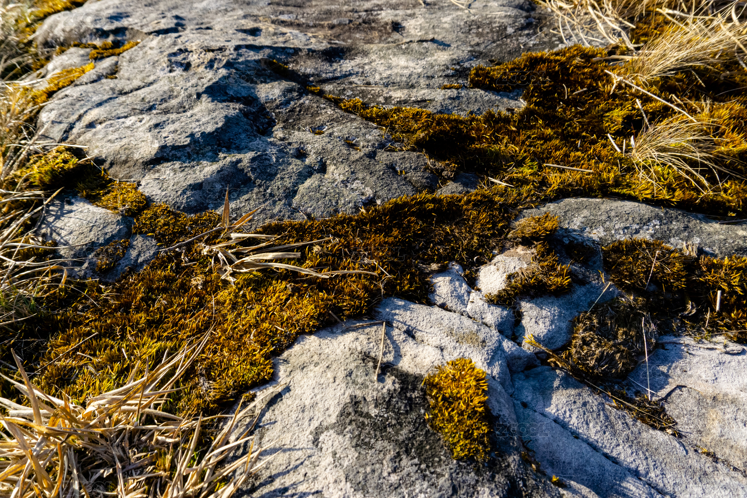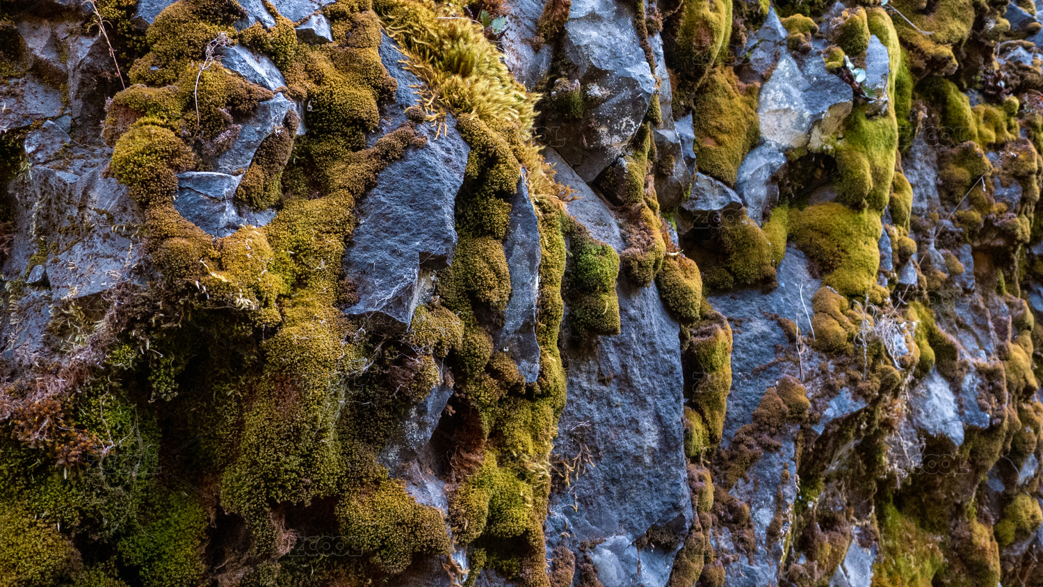 两个长满了苔藓的岩石中间有条细细的缝隙