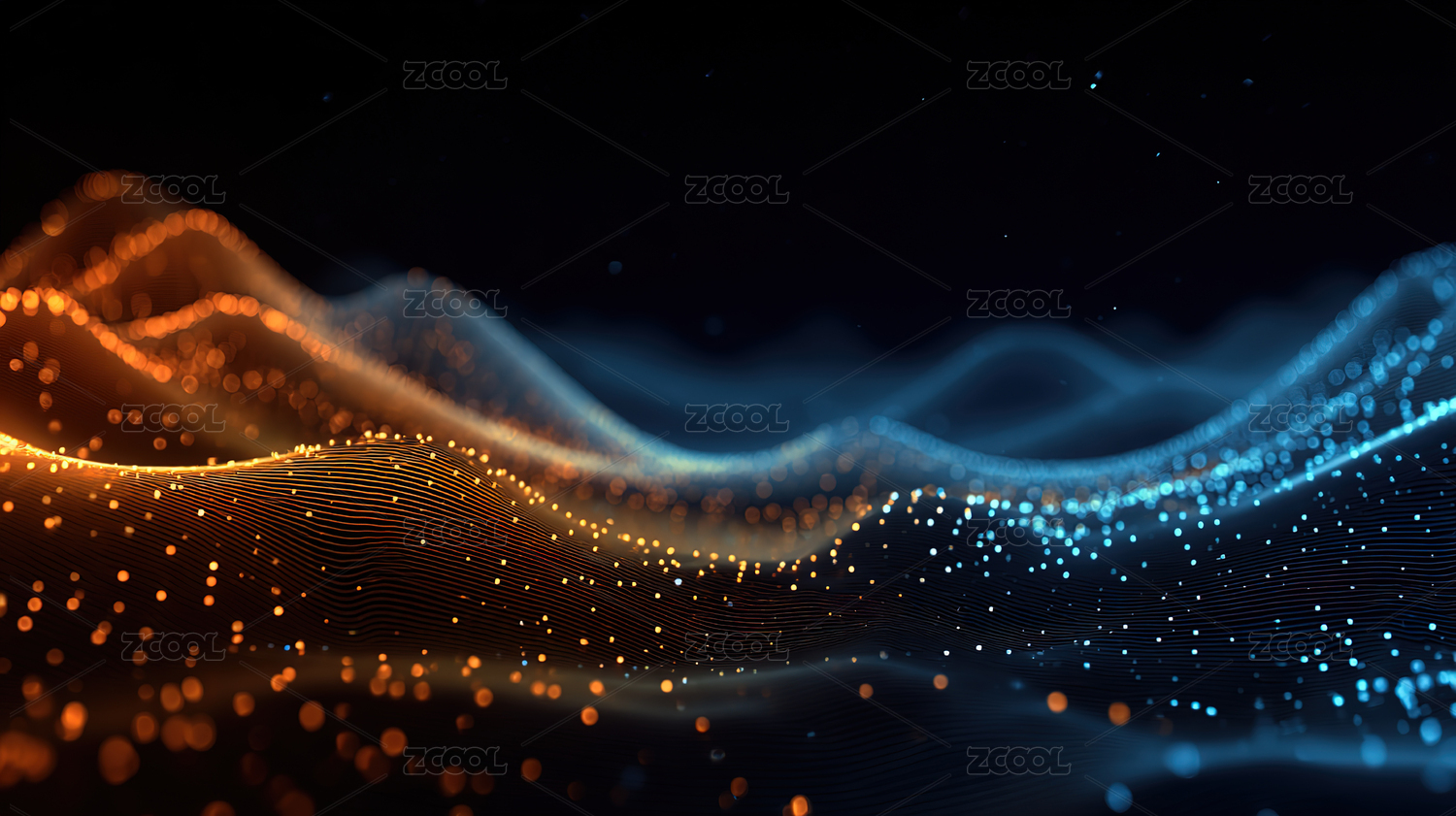橙蓝波浪与粒子流动图