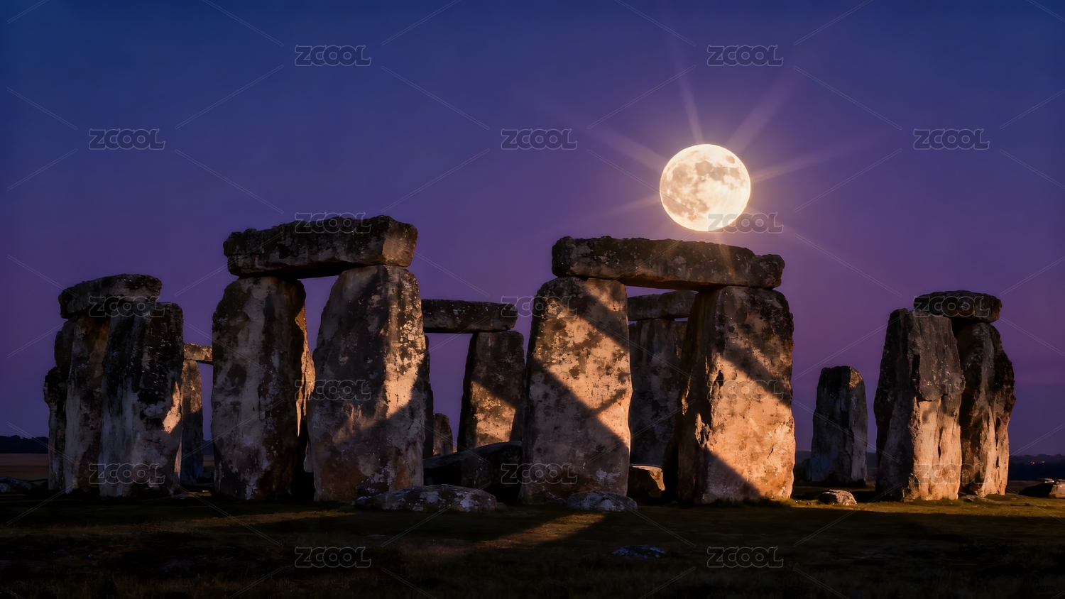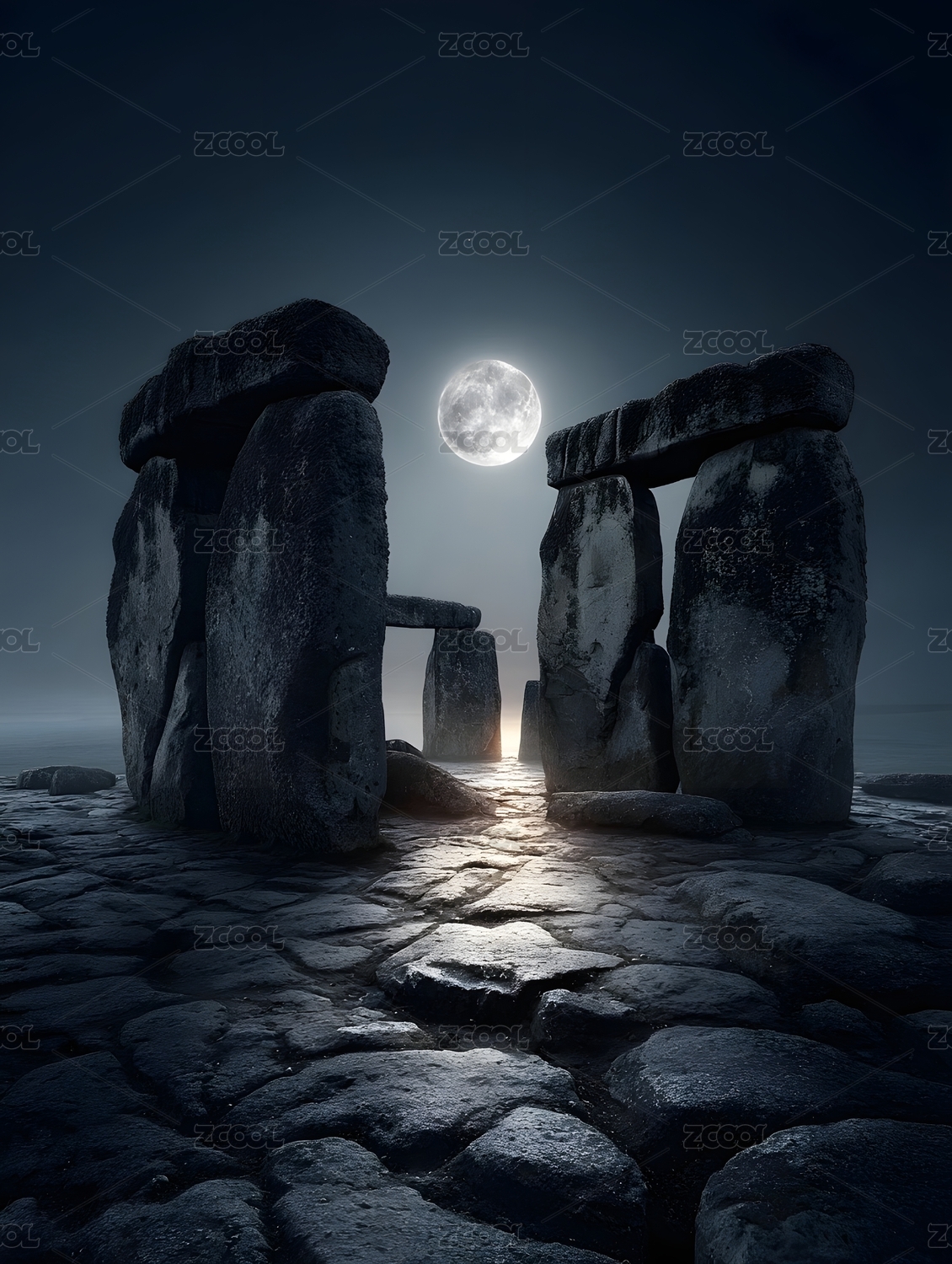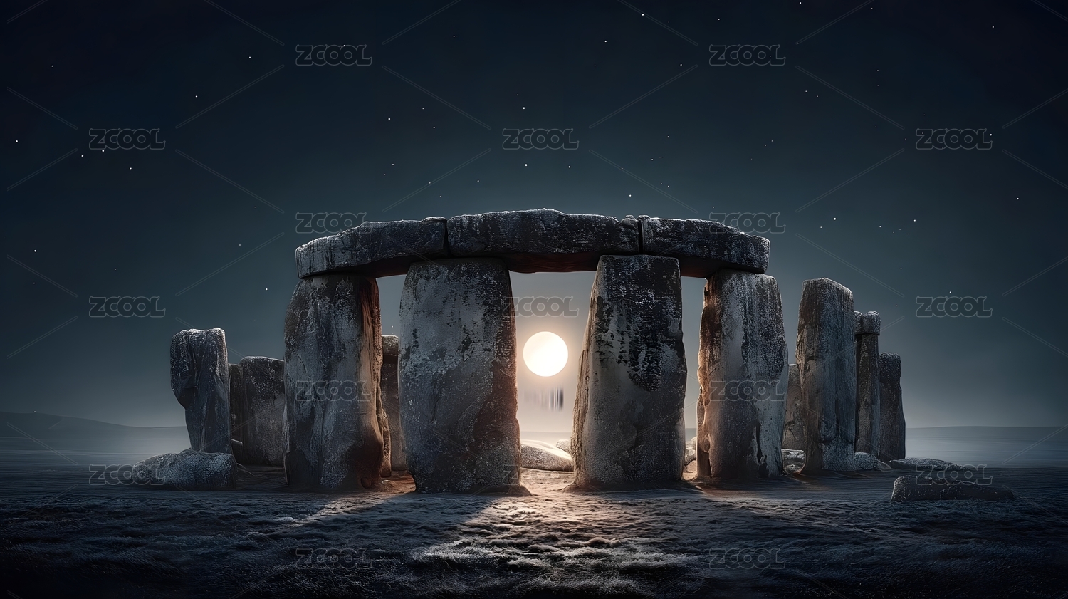 云,石块,石阵,月亮,巨石,星空,夜晚,石柱,银河,圆形