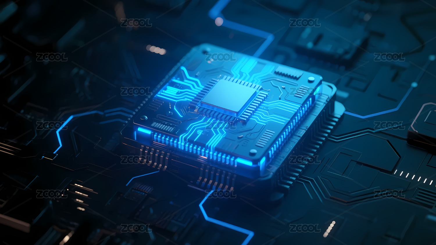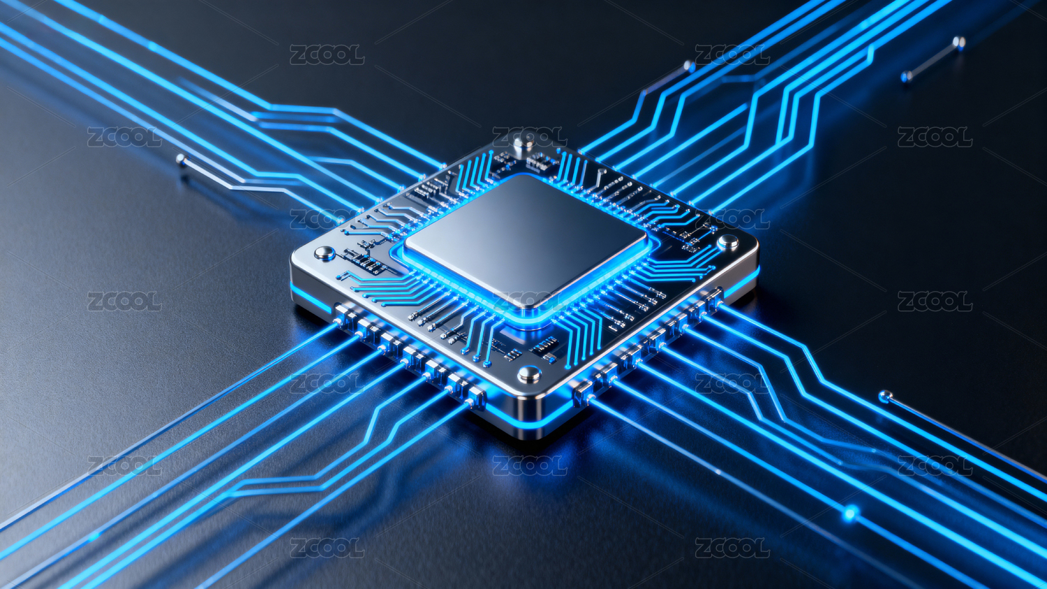 科技,蓝色,设计,方形,电子,芯片,电路,金属,处理器,芯片组